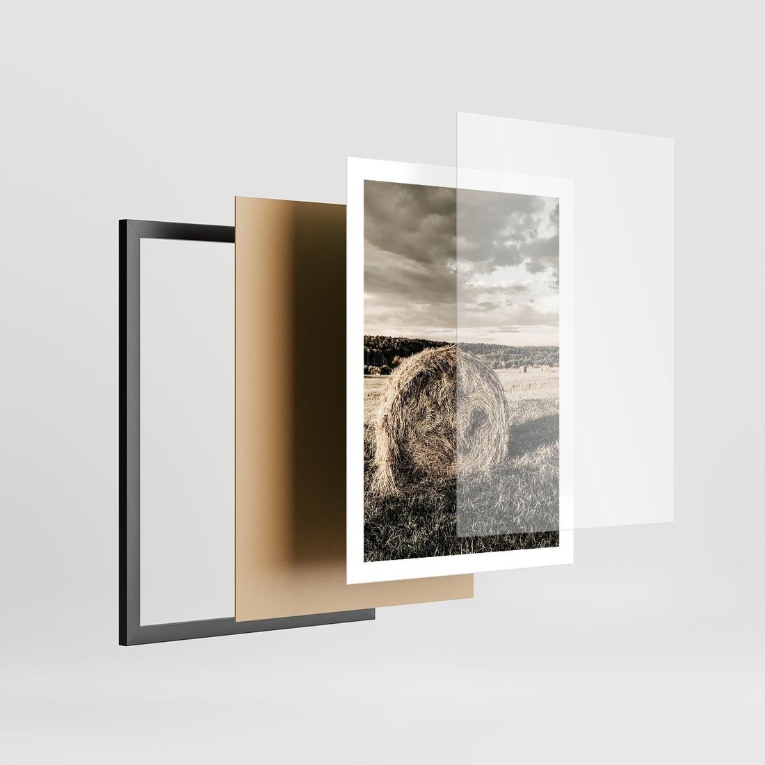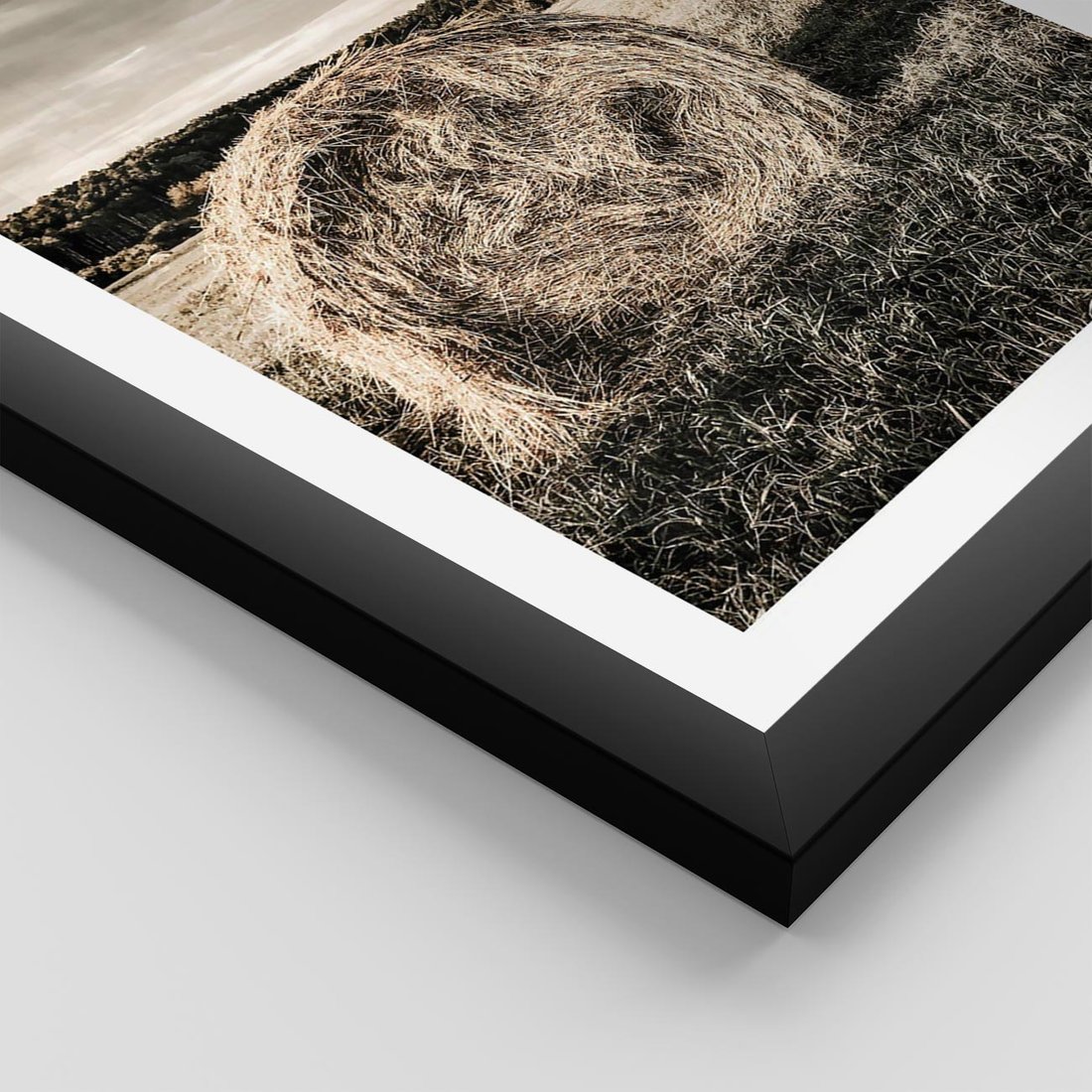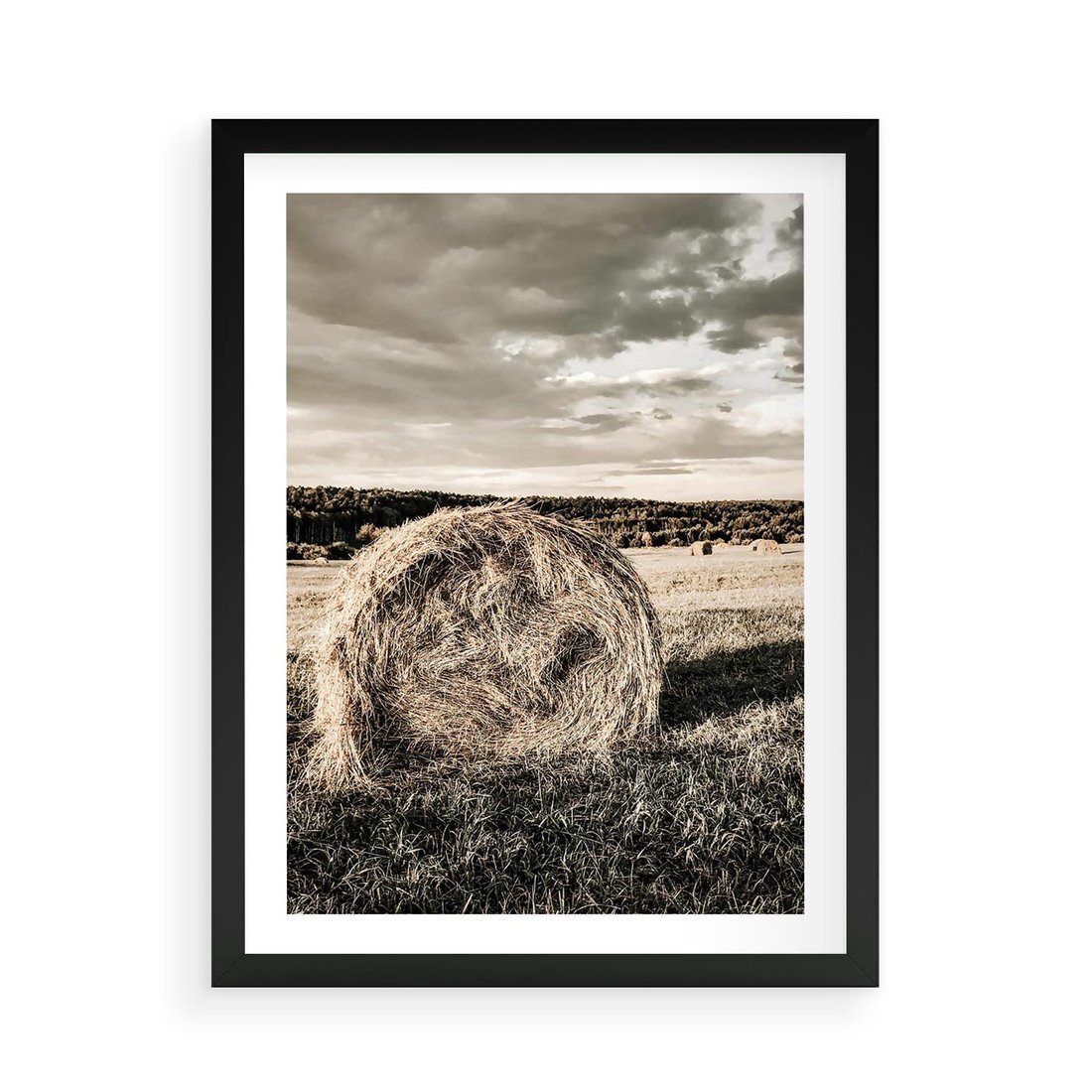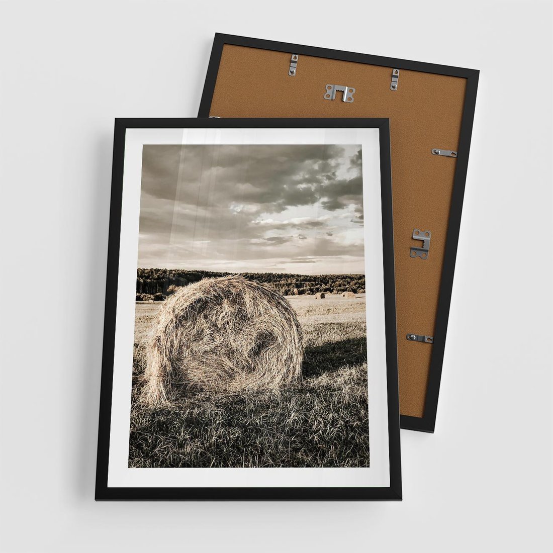 Plakat w ramie 50x70 - Ciepło Natury - snopki siana, pole - rama czarna