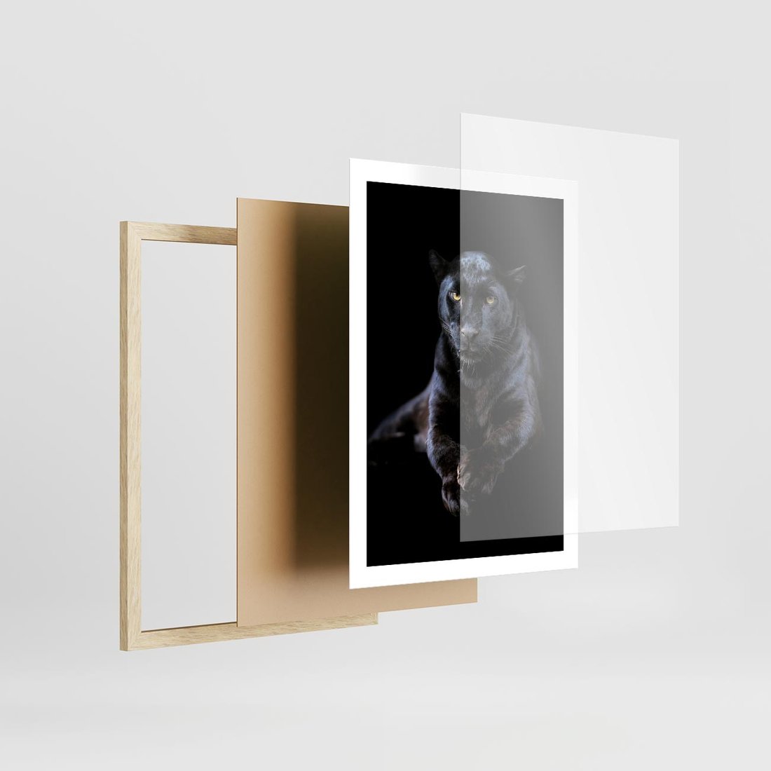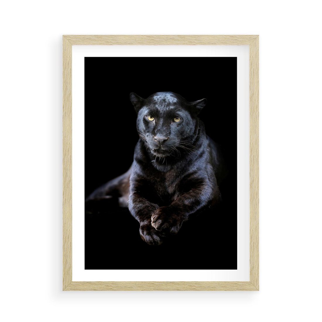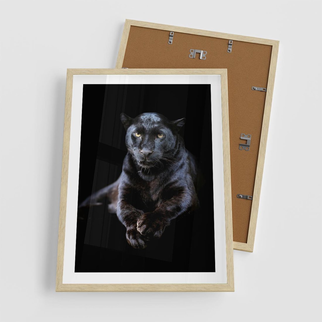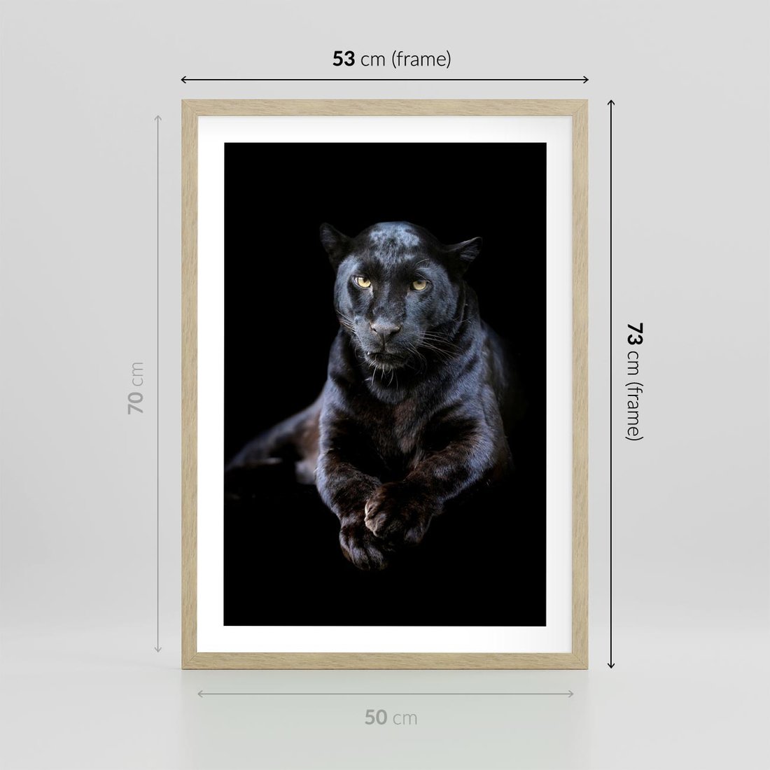 Plakat w ramie 50x70 - Czarna pantera: majestat i siła - czarna, pantera - rama drewno