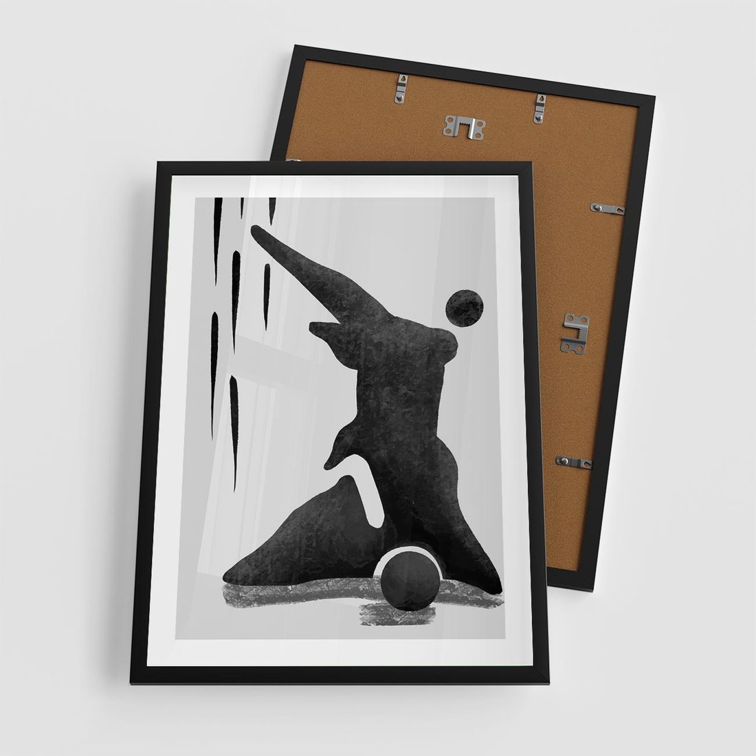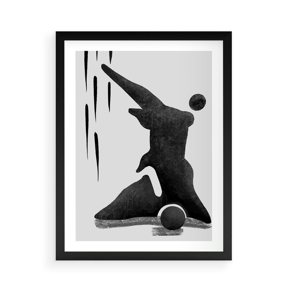 To nowoczesna grafika w czarno-białym stylu, przedstawiająca abstrakcyjną postać. Plakat ten łączy w sobie nowatorski design z minimalistycznym podejściem.