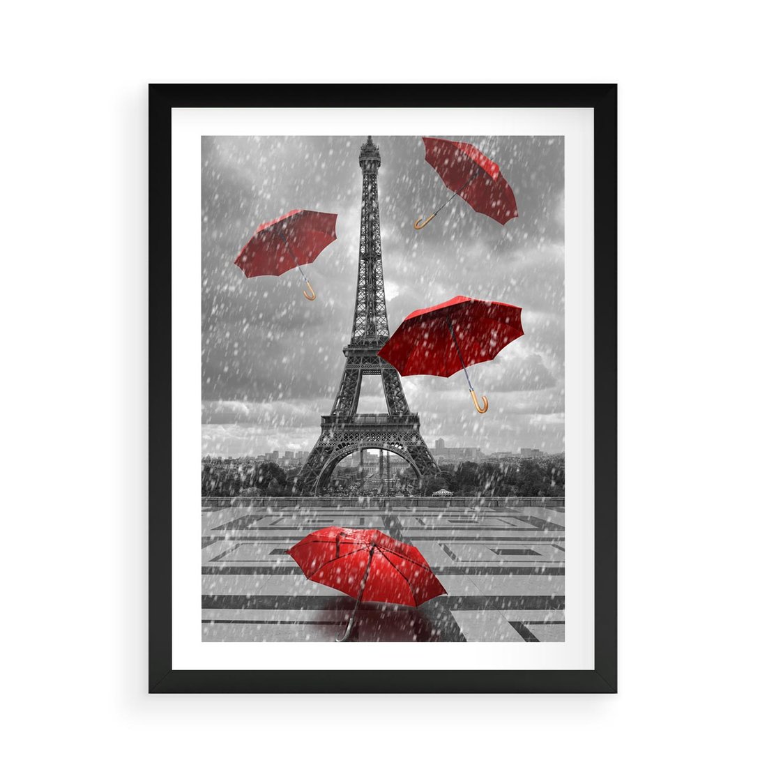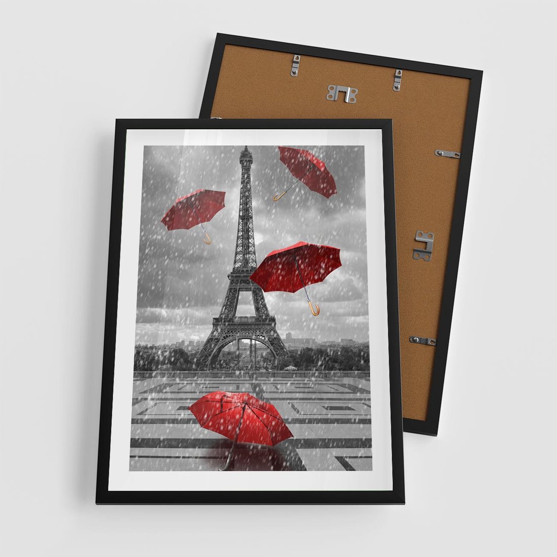 Plakat w ramie 50x70 - Czarno-biała magia Eiffla - Eiffla, Paryż - rama czarna