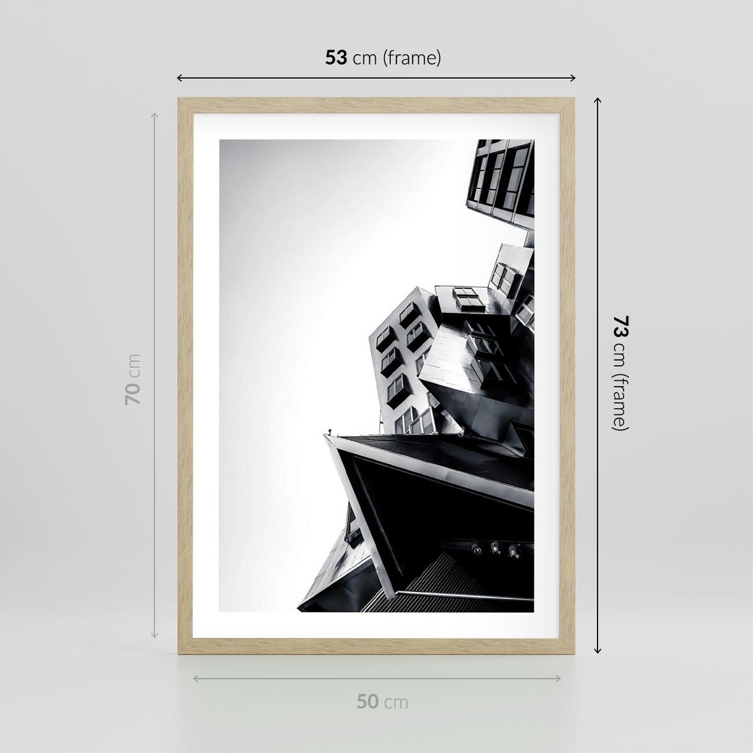 Plakat w ramie 50x70 - Czarno-Biały Świat - architeltura, surowość - rama drewno