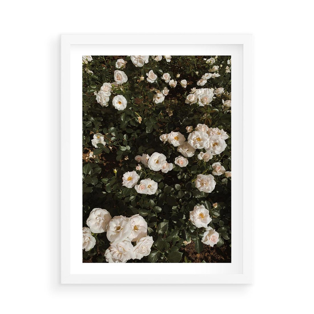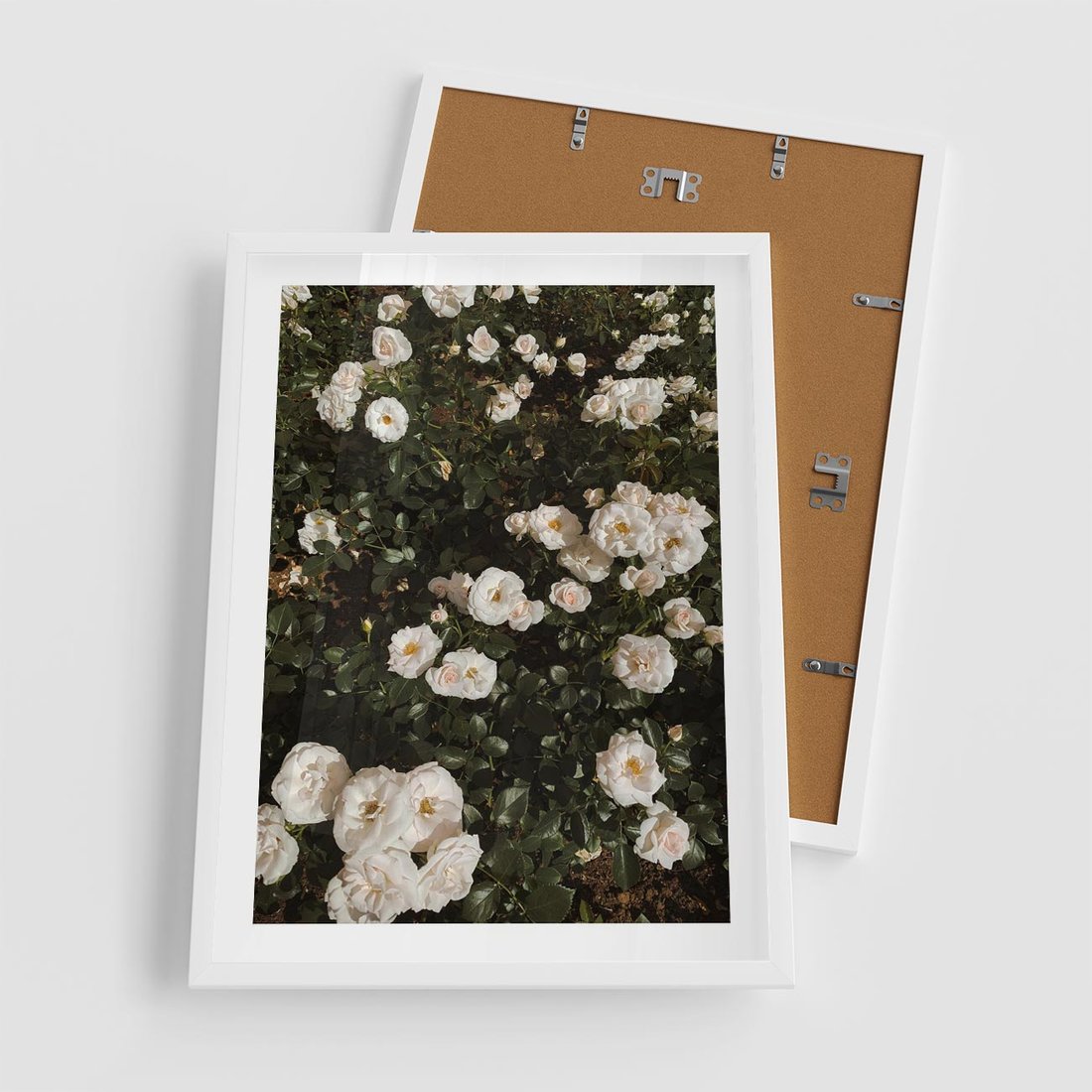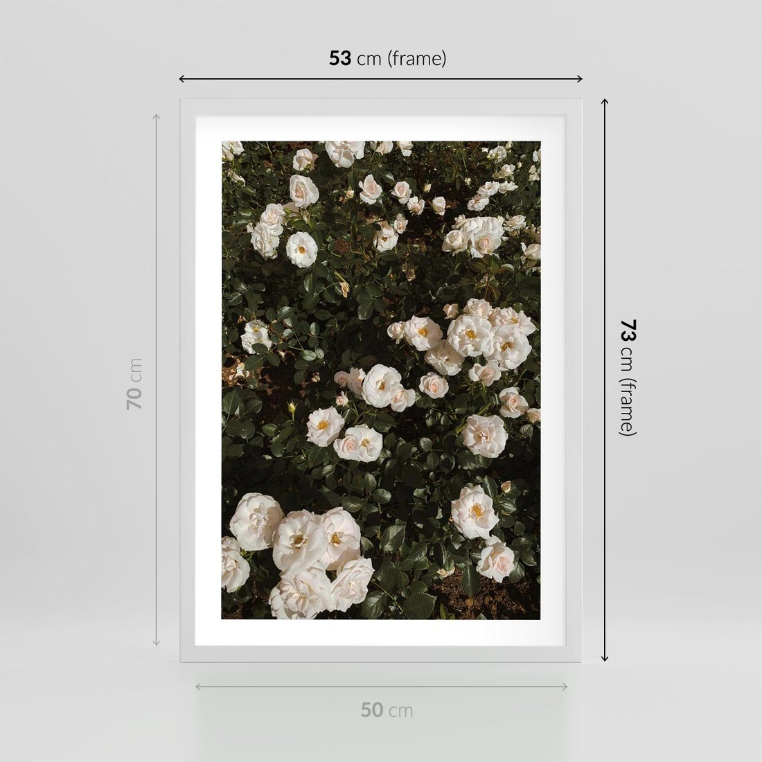 Plakat w ramie 50x70 - Czyste Piękno - białe kwiaty, białe róże - rama biała