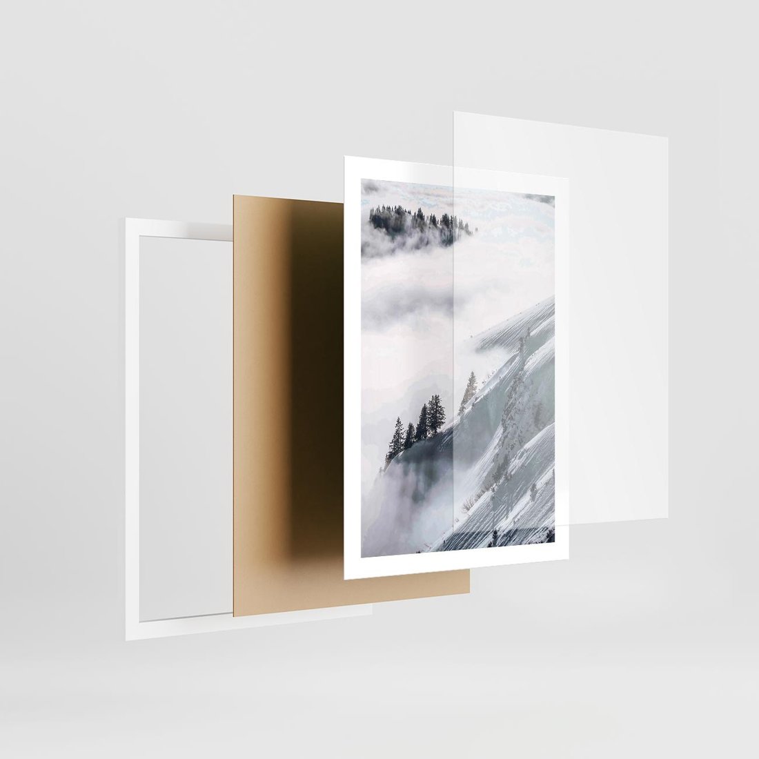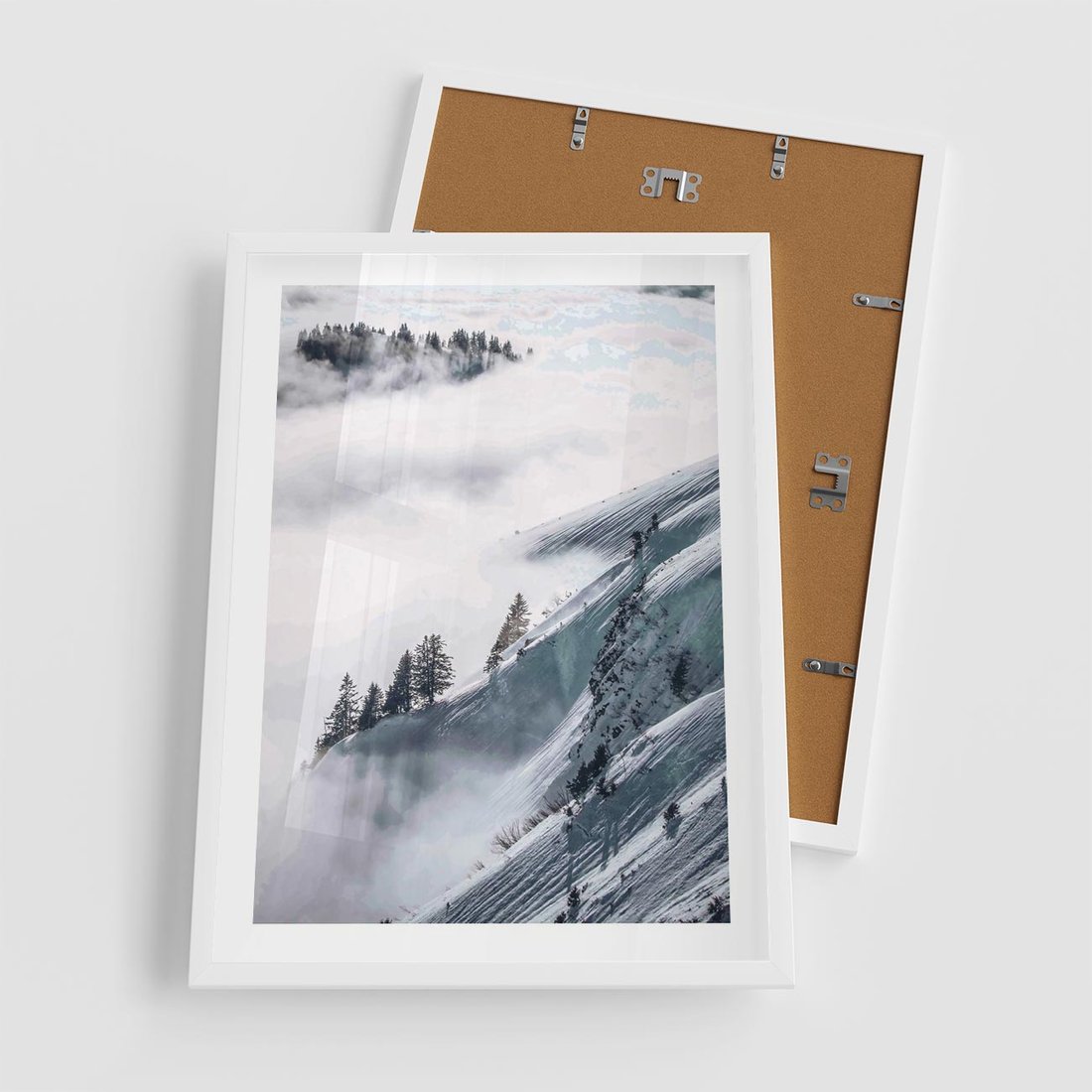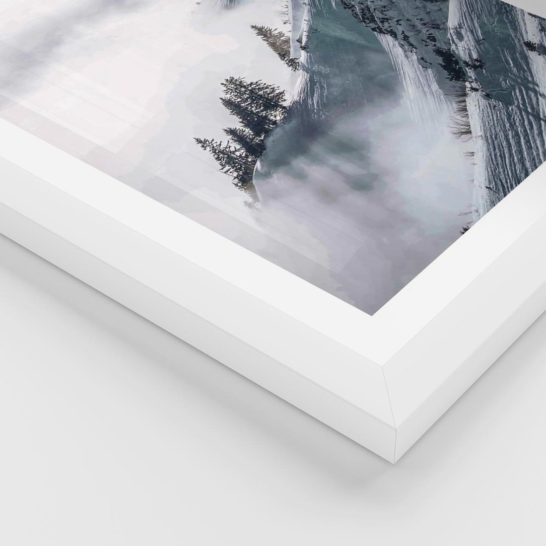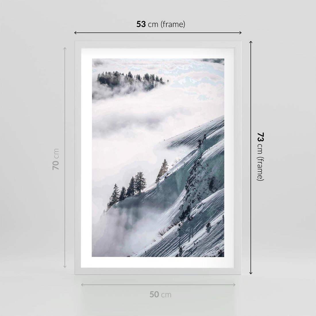 Plakat w ramie 50x70 - Czystość Natury - ośnieżone szczyty górskie, pejzaż - rama biała