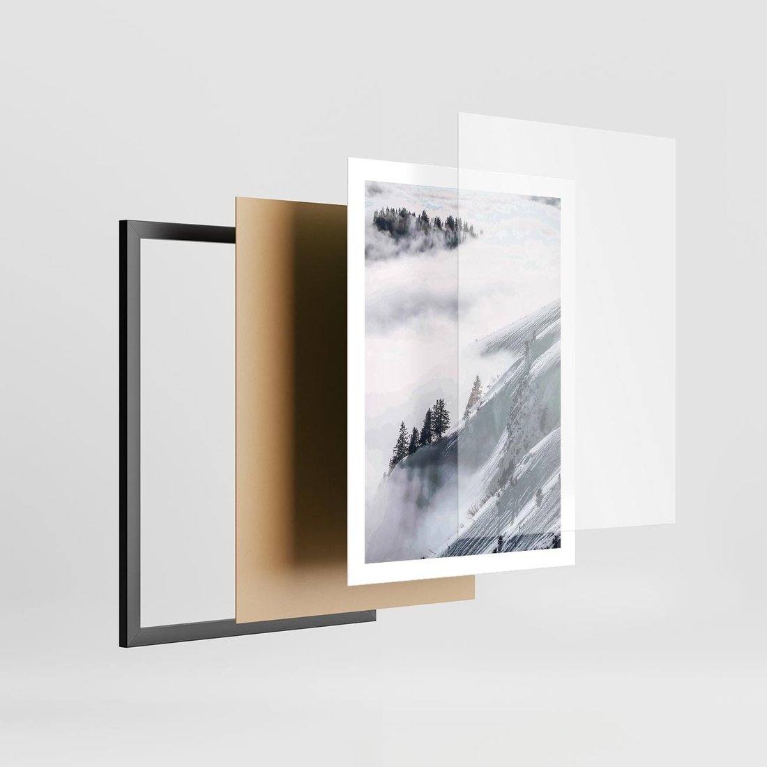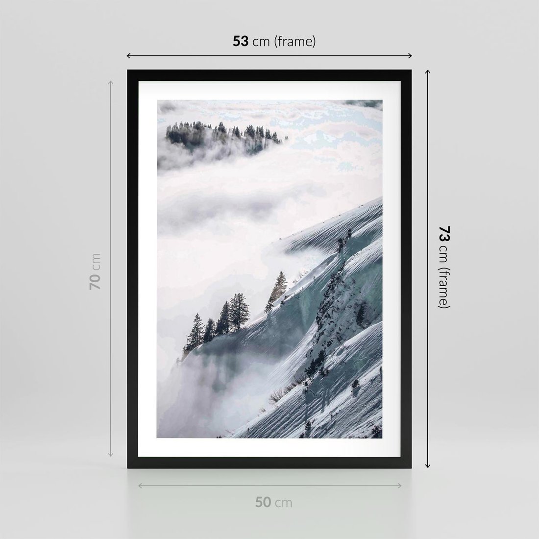 Plakat w ramie 50x70 - Czystość Natury - ośnieżone szczyty górskie, pejzaż - rama czarna