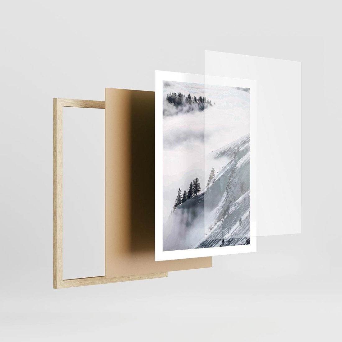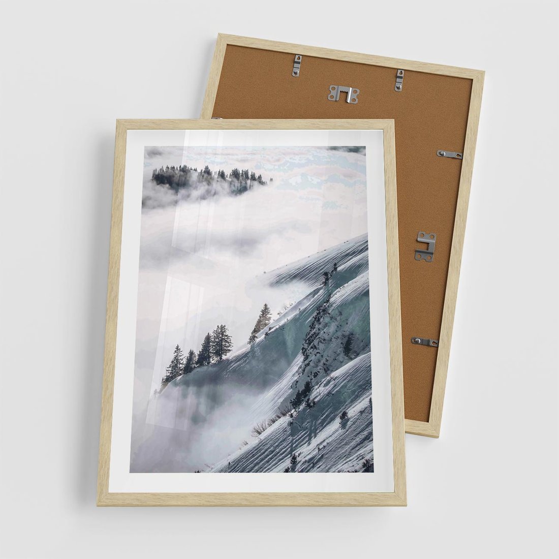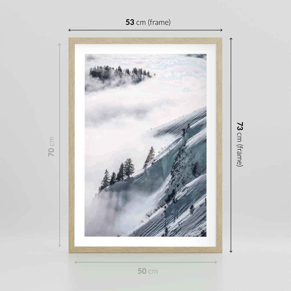 Plakat w ramie 50x70 - Czystość Natury - ośnieżone szczyty górskie, pejzaż - rama drewno