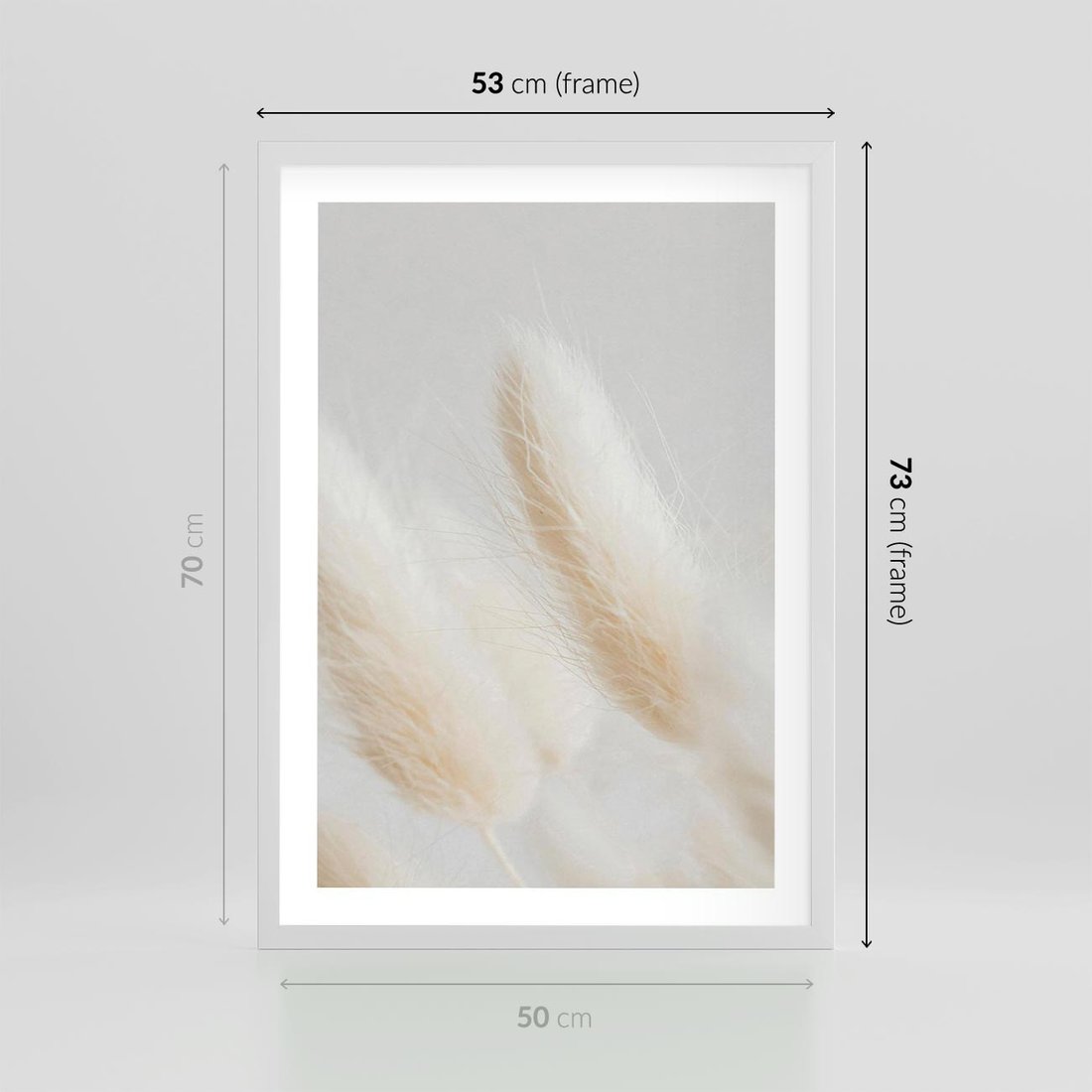 Plakat w ramie 50x70 - Czysty Minimalizm - białe trawy, minimalizm - rama biała