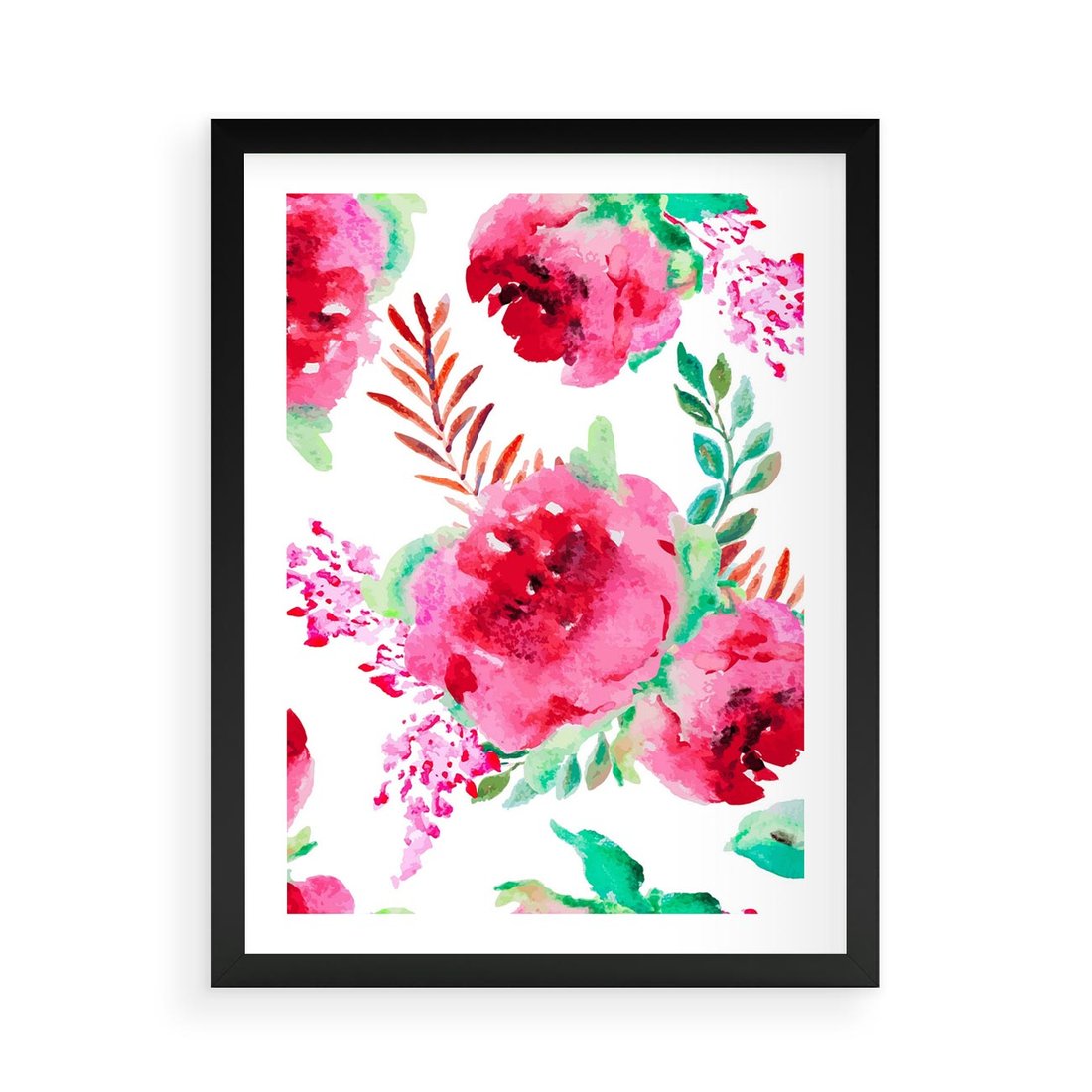 Plakat w ramie 50x70 - Delikatna Akwarela - kwiaty, akwarela - rama czarna