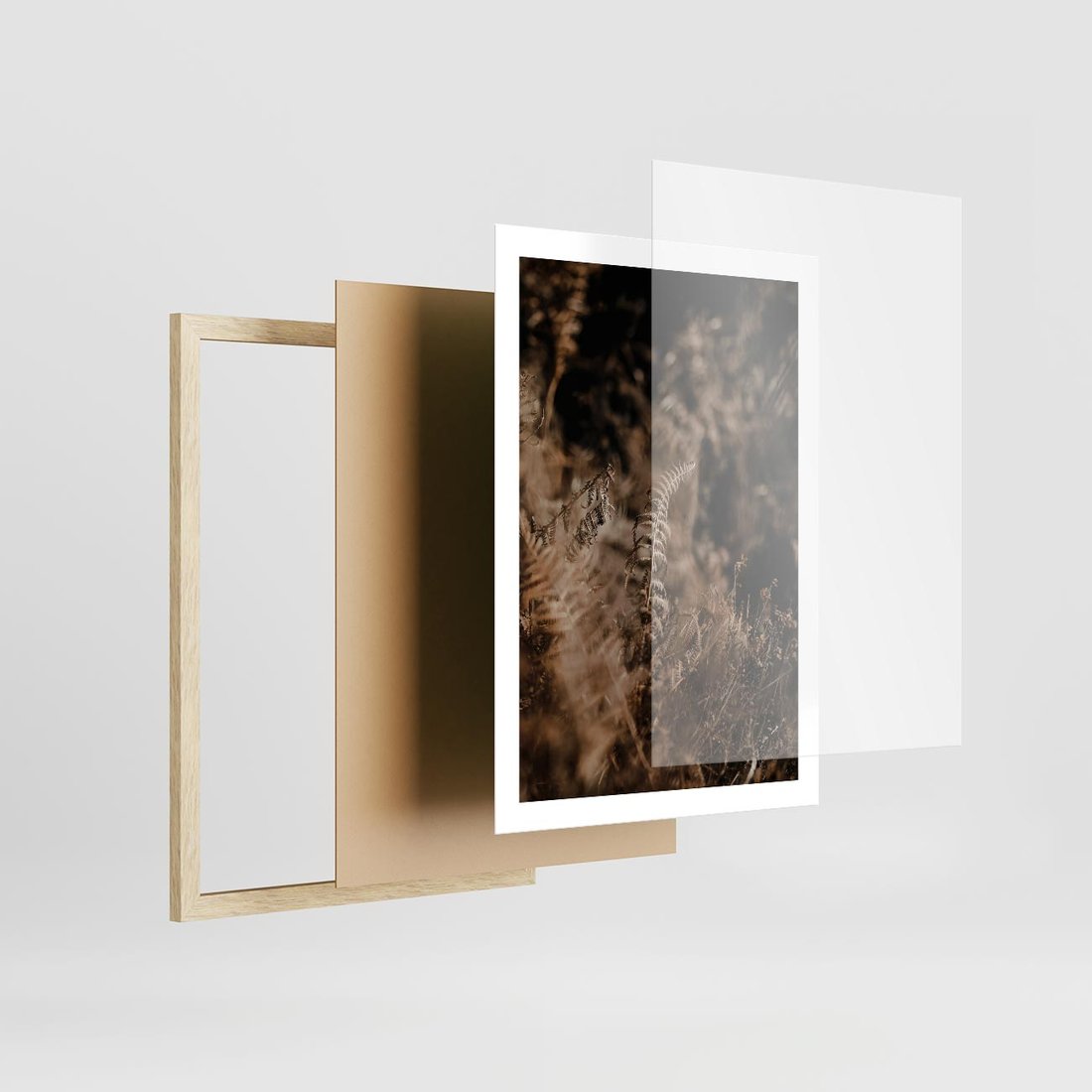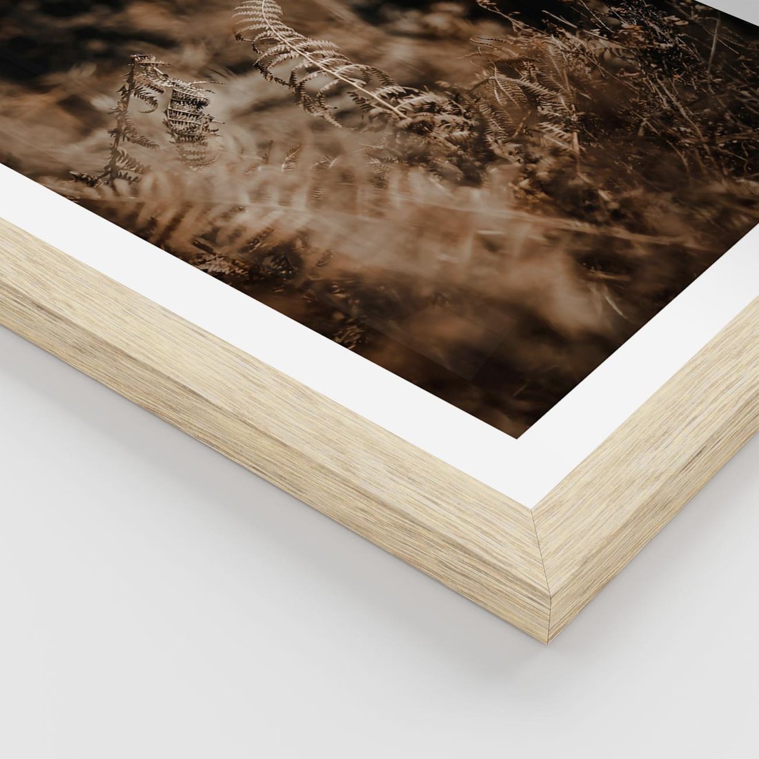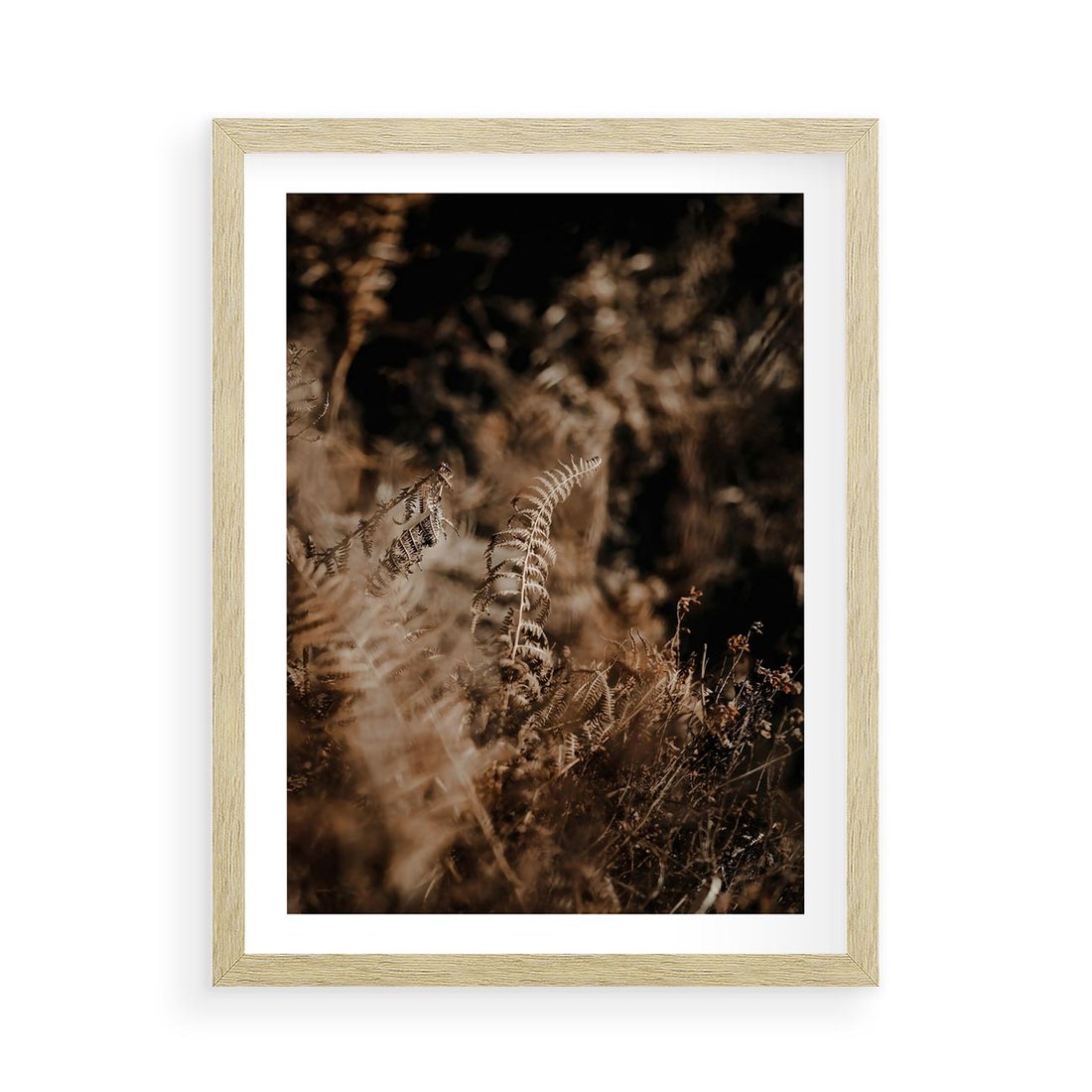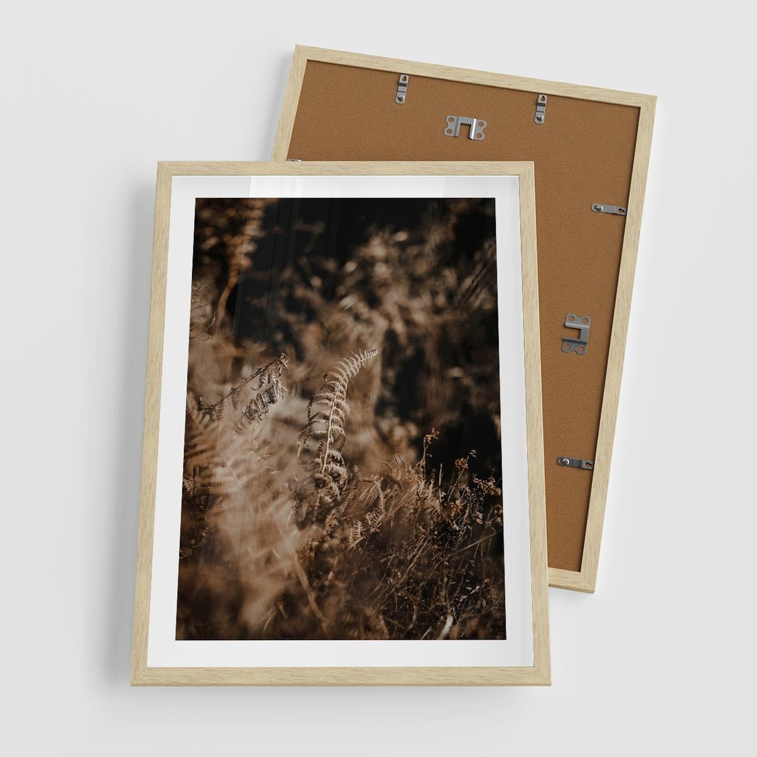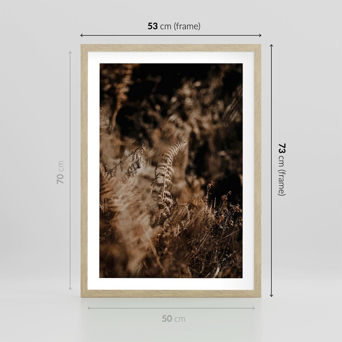 Plakat w ramie 50x70 - Delikatne Detale - paprocie, brąz - rama drewno
