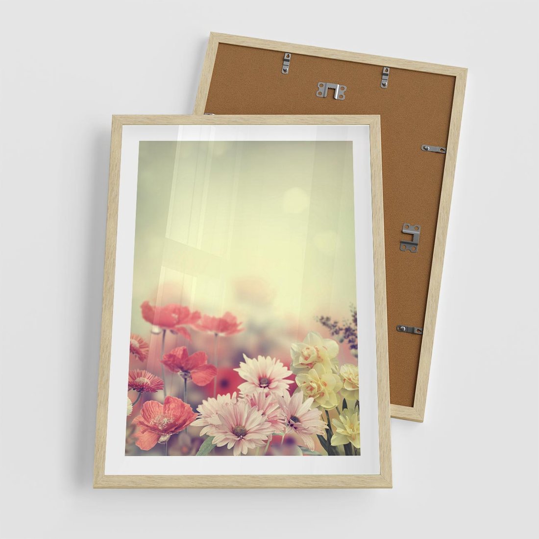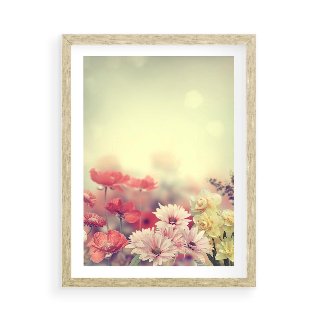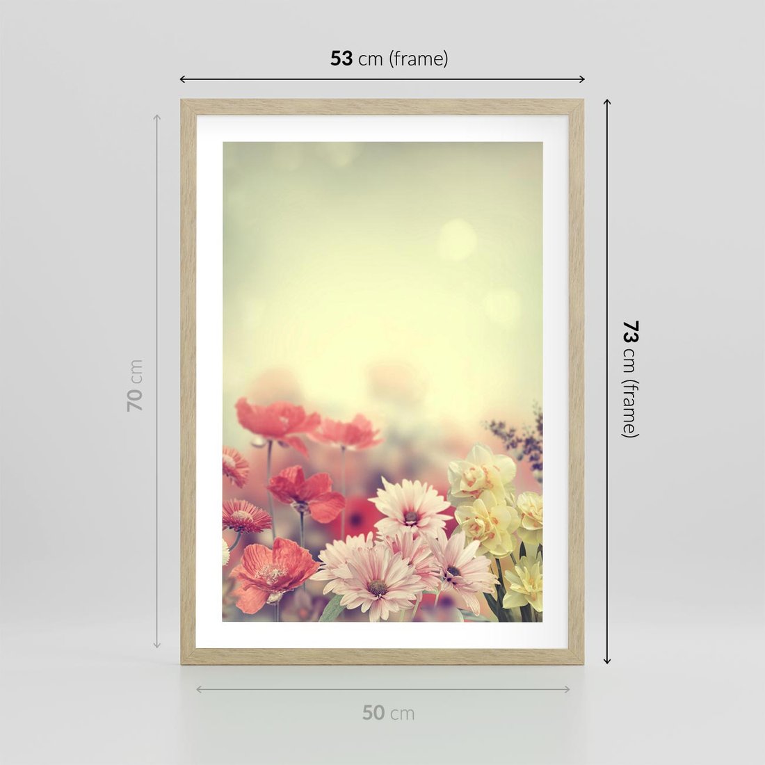 Plakat w ramie 50x70 - Delikatne kwiaty pastelowe - kwiaty, pastelowe - rama drewno