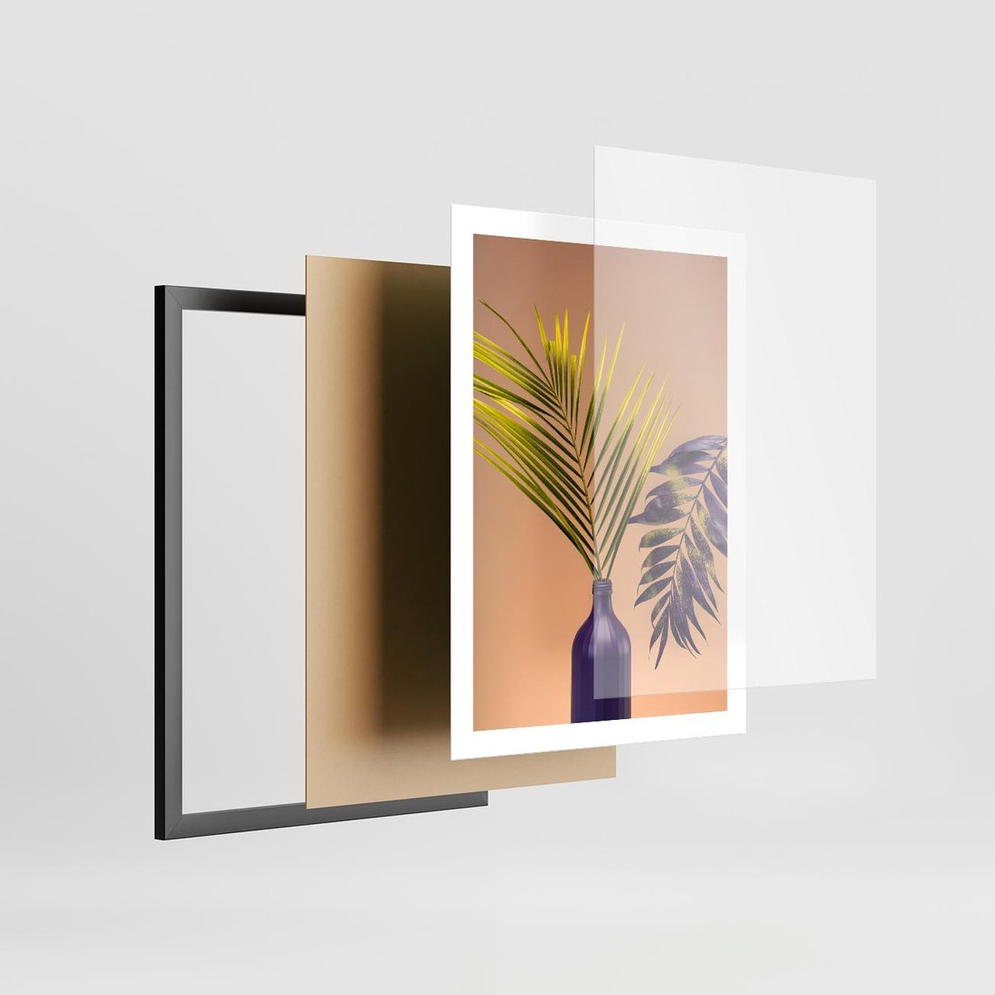 Plakat w ramie 50x70 - Delikatne Piękno - palma, pastele - rama czarna