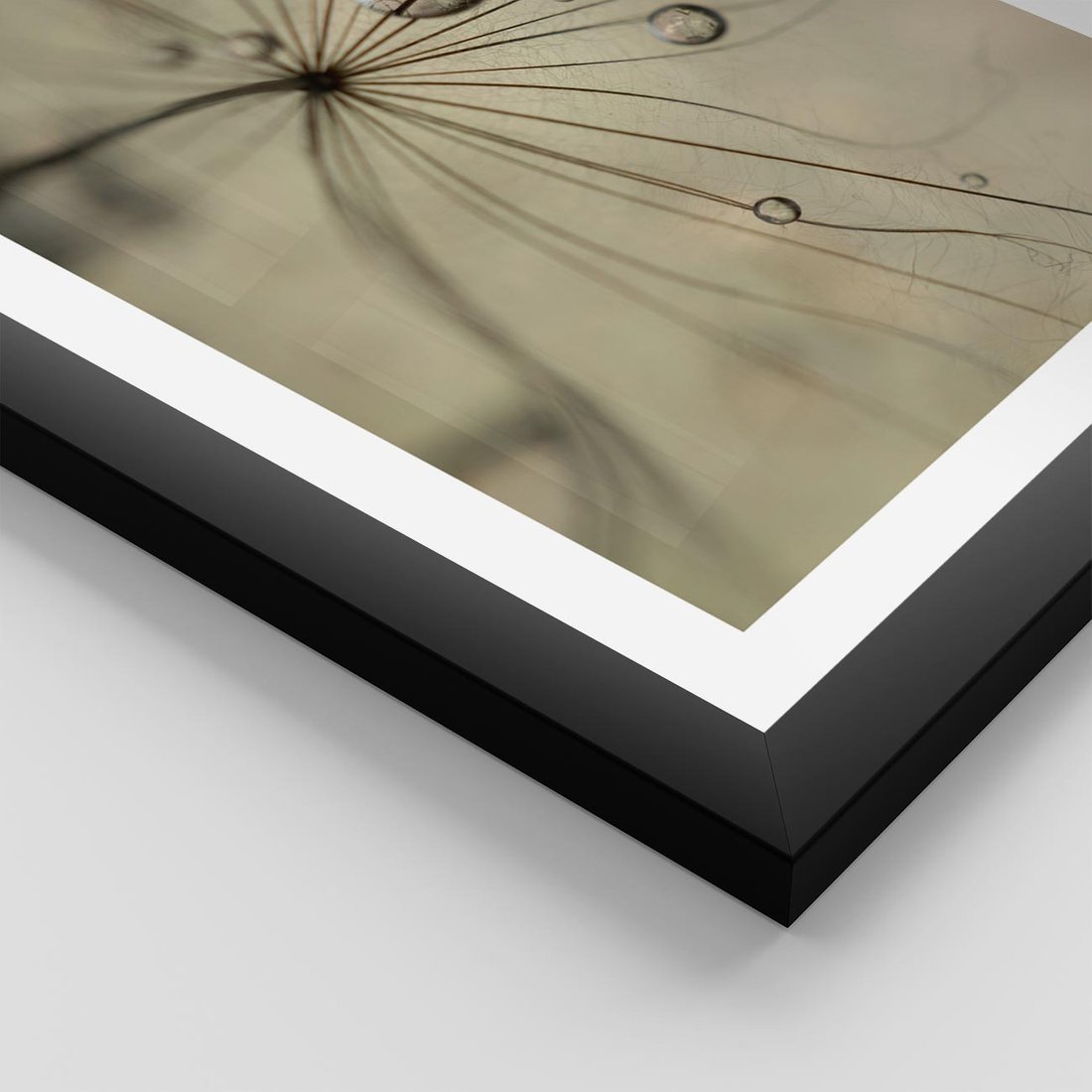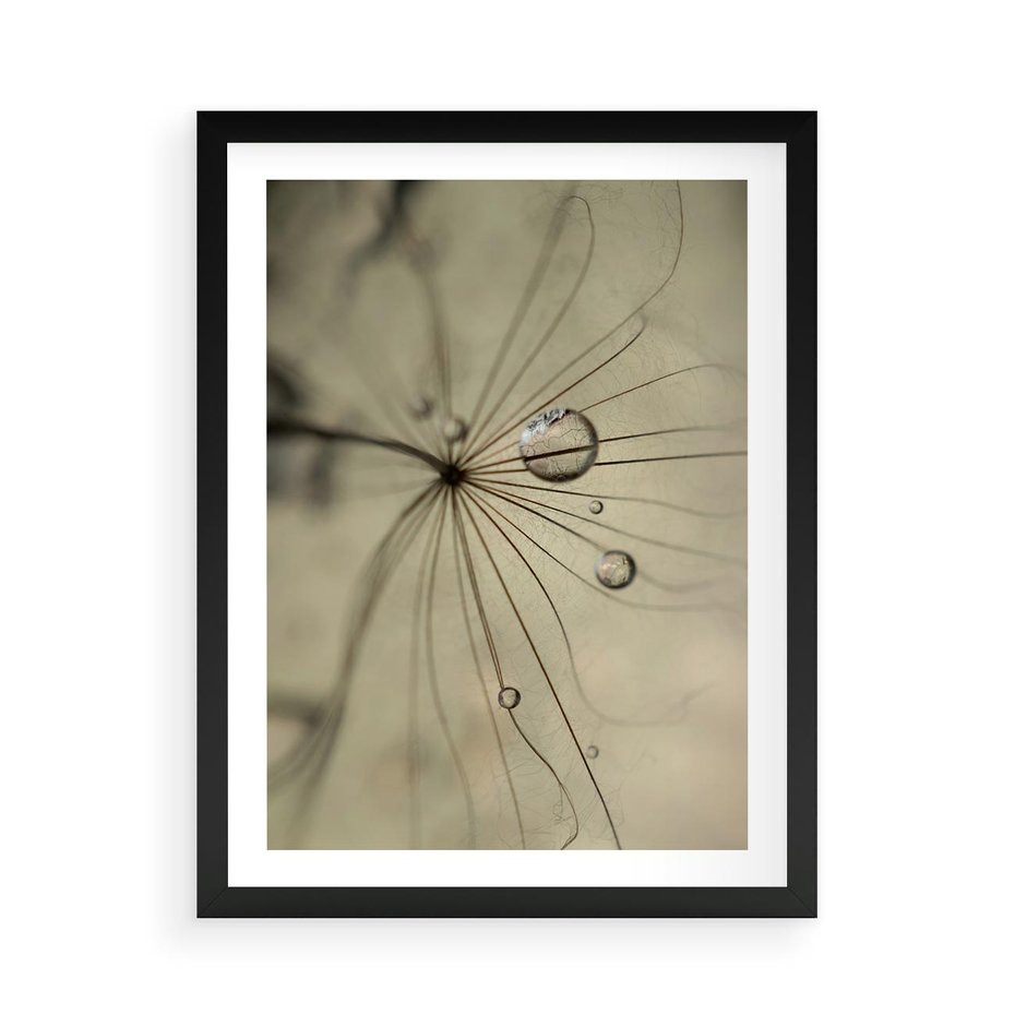 Plakat w ramie 50x70 - Delikatność dmuchawców - dmuchawce, krople - rama czarna