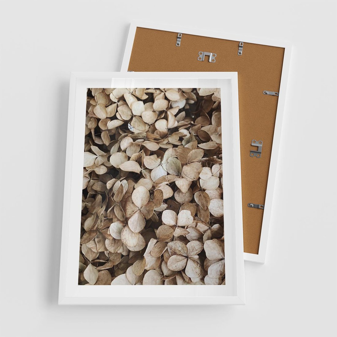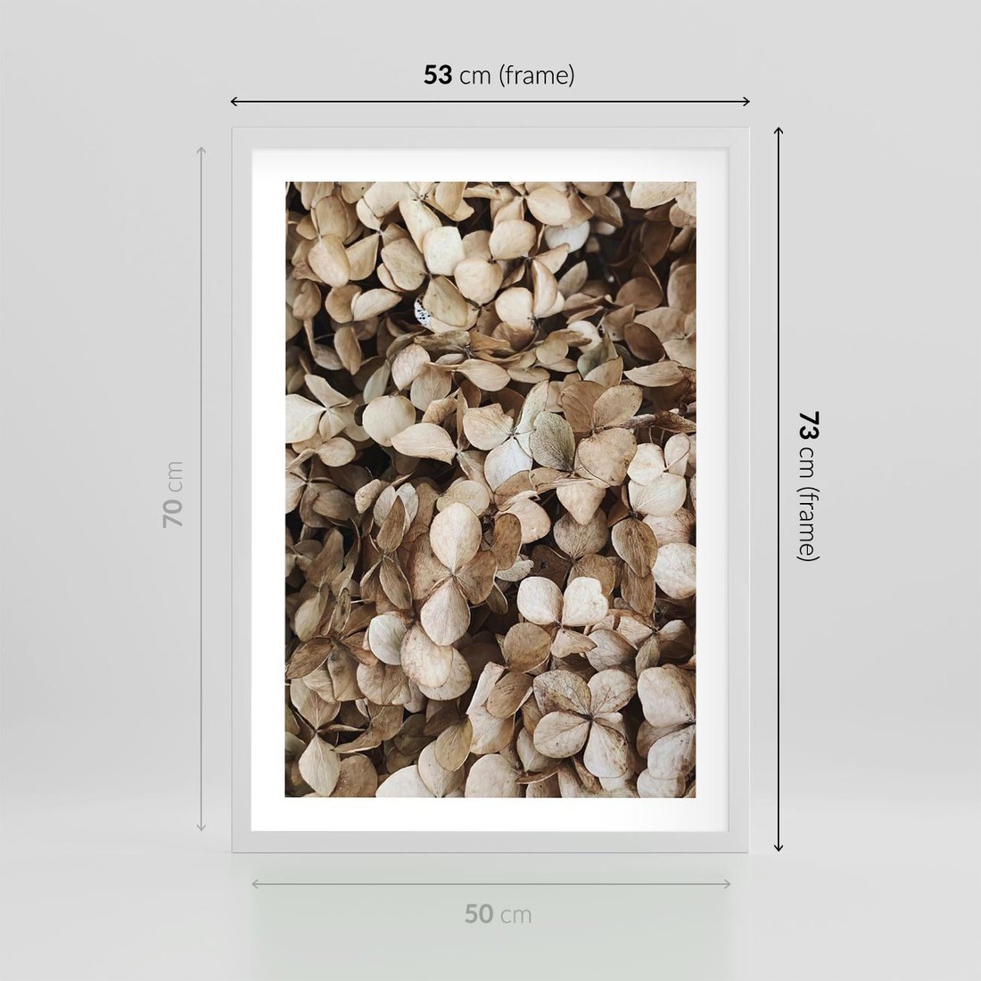 - Plakat w ramie 50x70 - Delikatność Hortensji: Kompozycja Kwiatów w Beżu