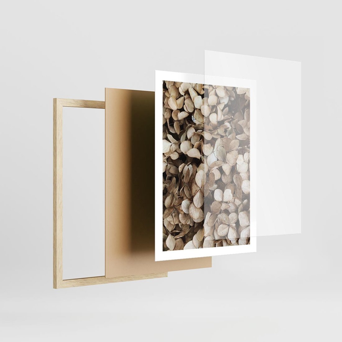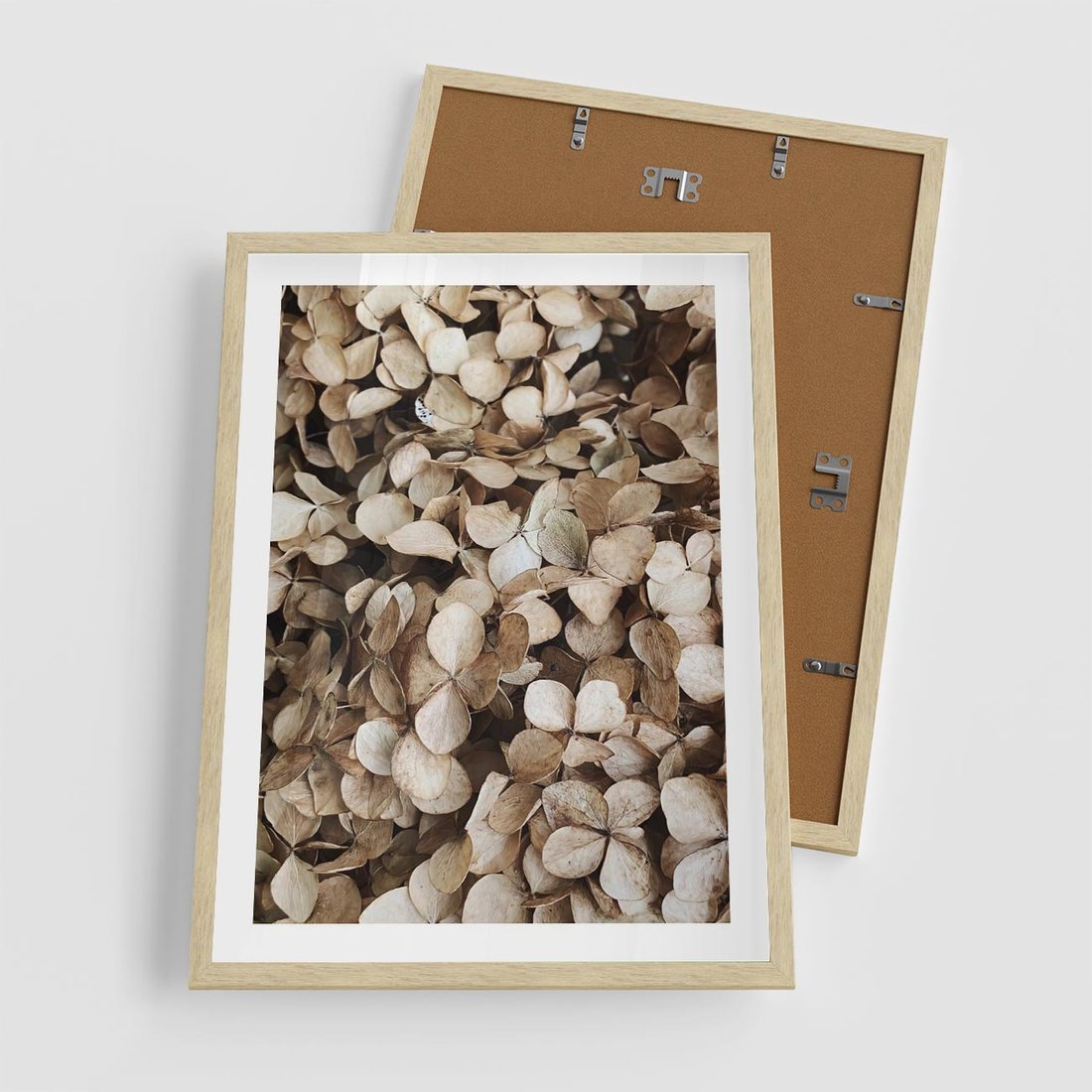 - Plakat w ramie 50x70 - Delikatność Hortensji: Kompozycja Kwiatów w Beżu