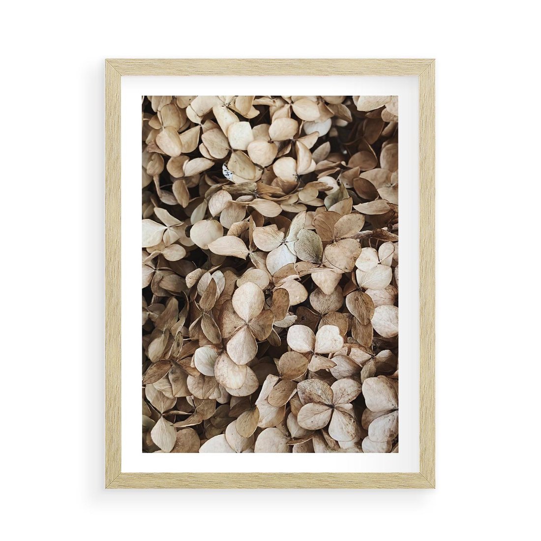 Plakat w ramie 50x70 - Delikatność Hortensji: Kompozycja Kwiatów w Beżu - hortensja, odcienie beżu - rama drewno