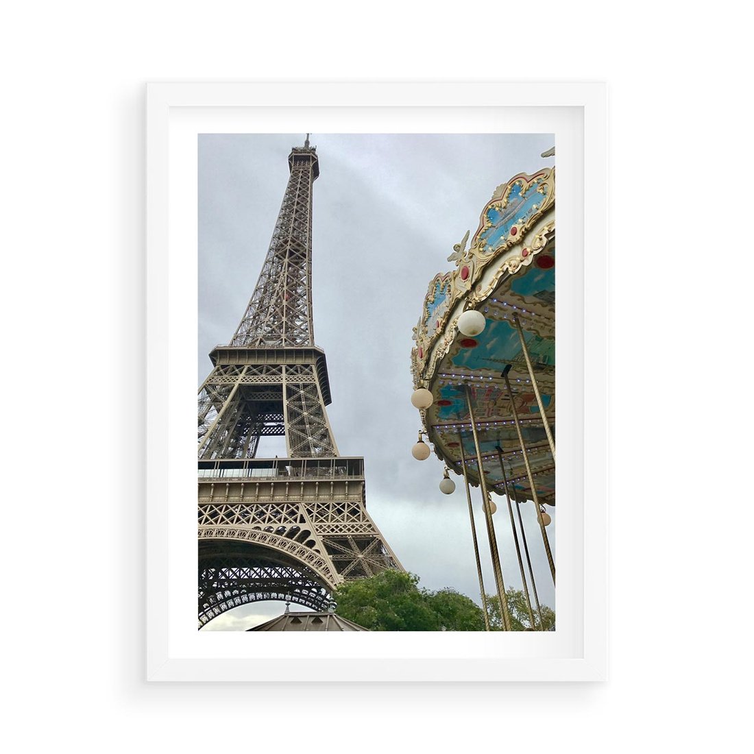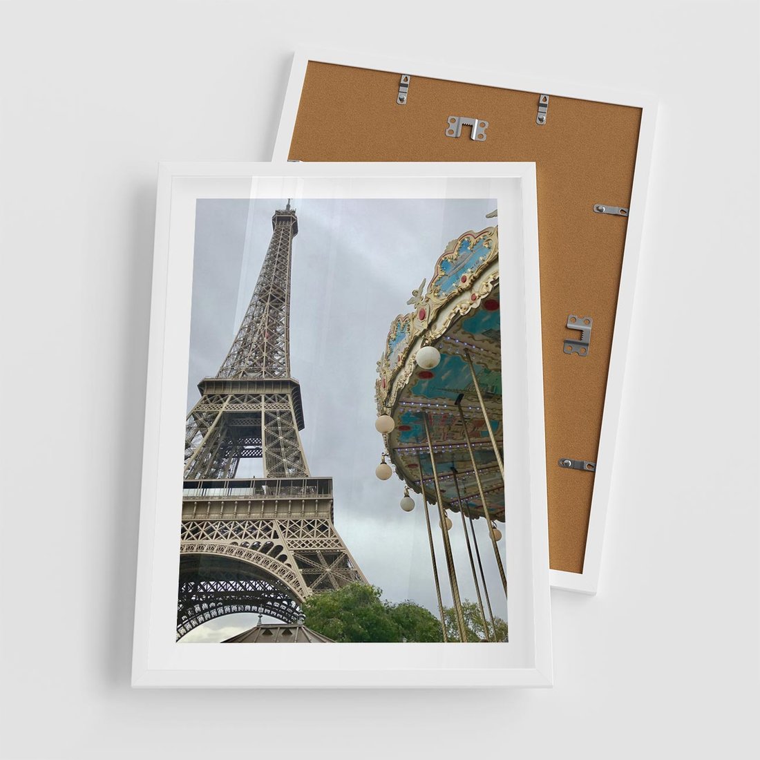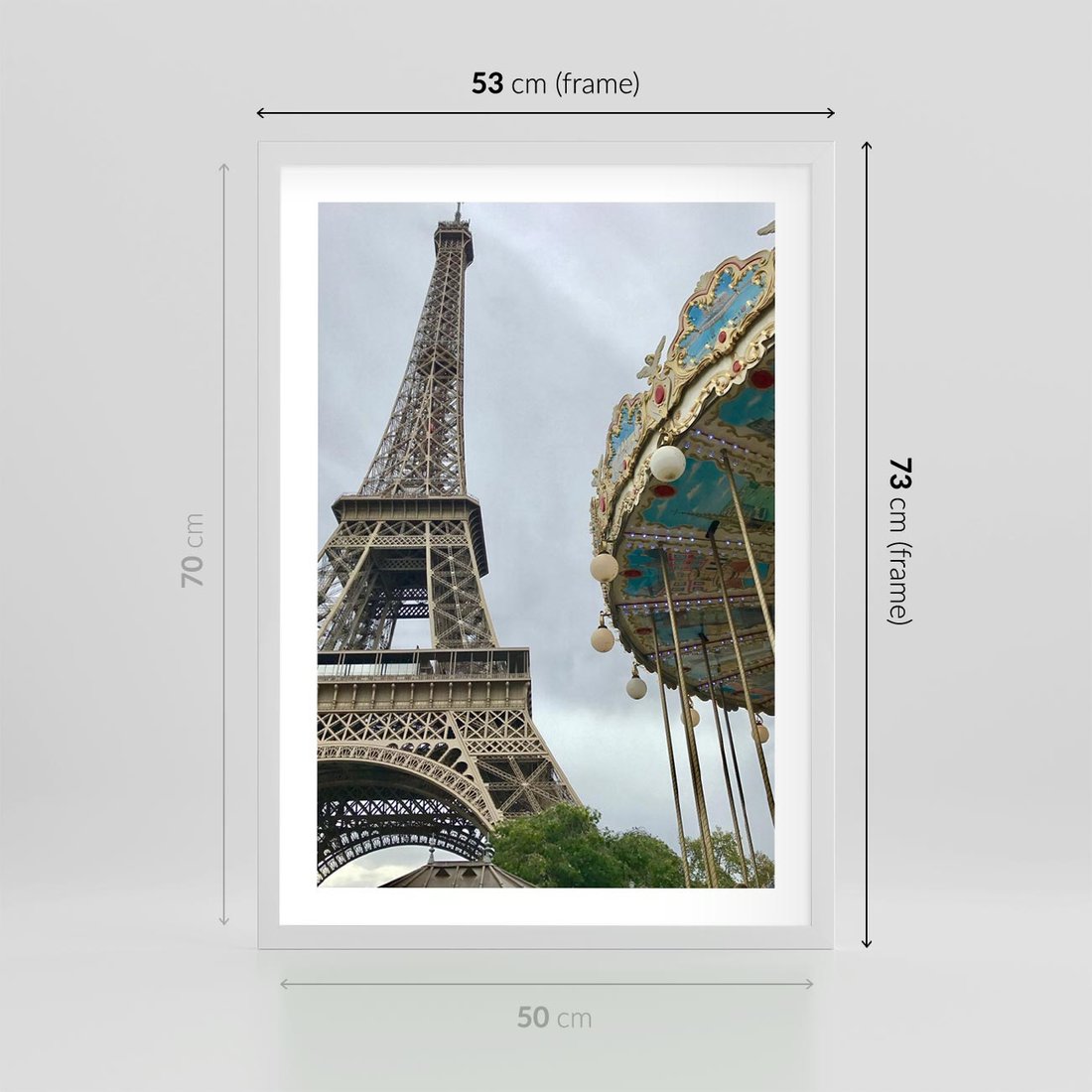 Plakat w ramie 50x70 - Delikatność kolorów - wieża, Eiffla - rama biała