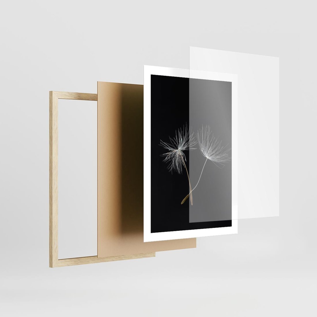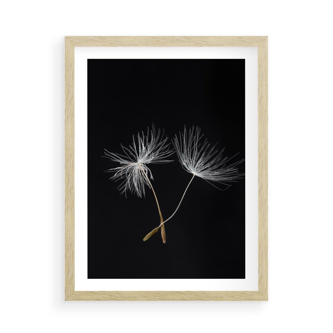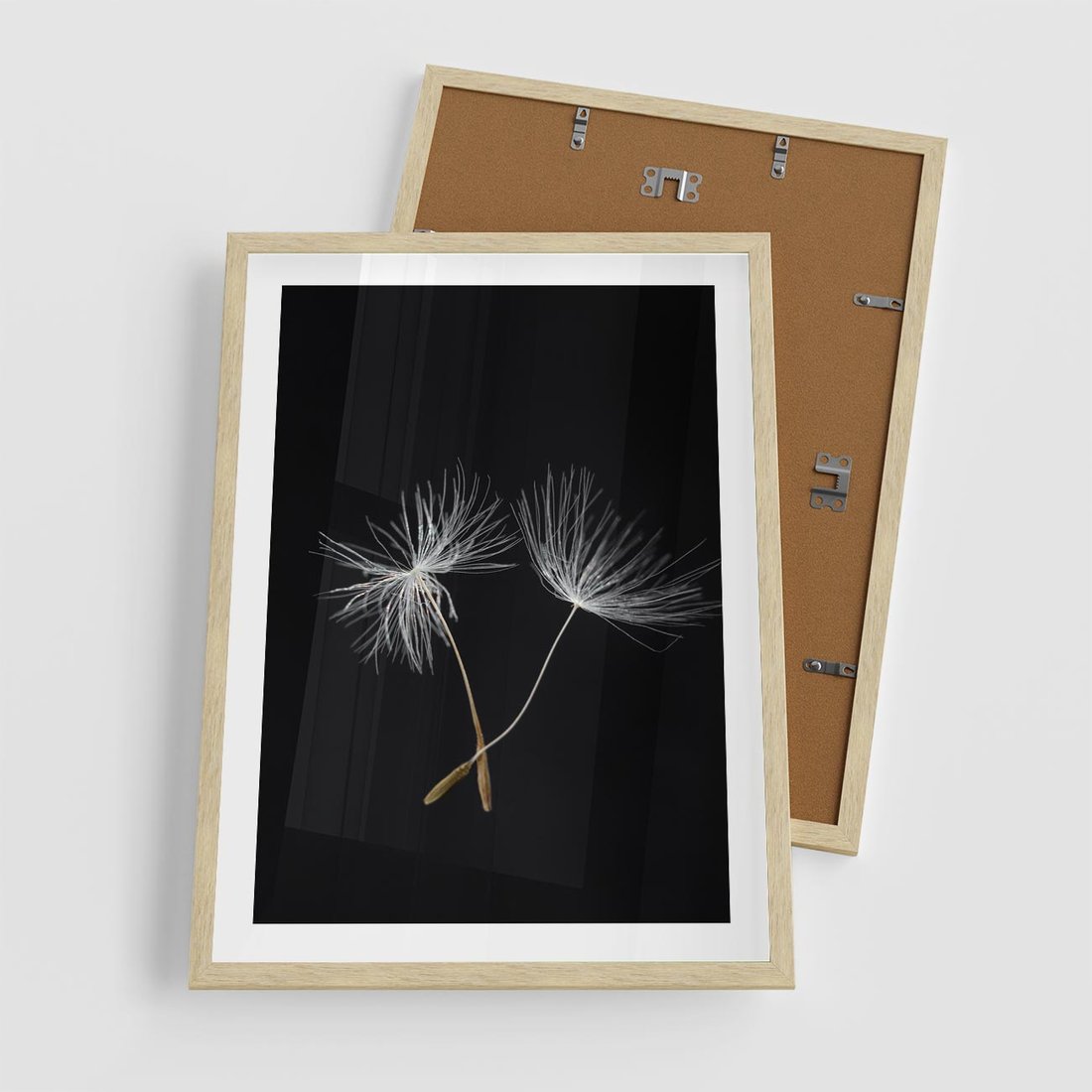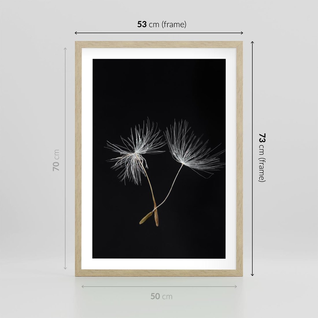 Plakat w ramie 50x70 - Delikatność Wiatru - dmuchawce, makro - rama drewno