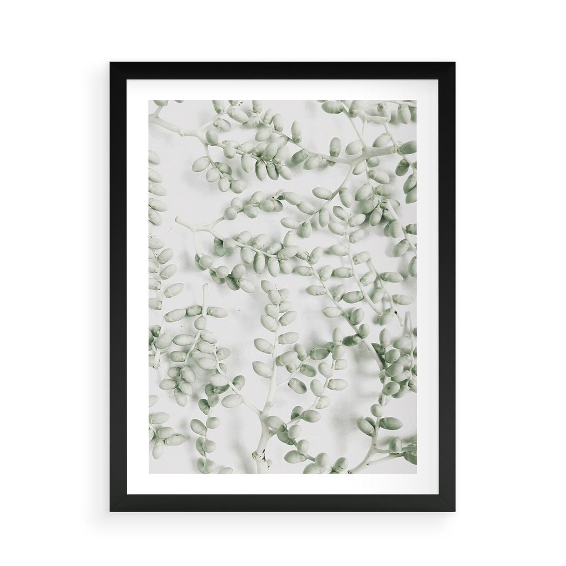 Plakat w ramie 50x70 - Delikatność Zieleni - zielone gałązki, listki - rama czarna