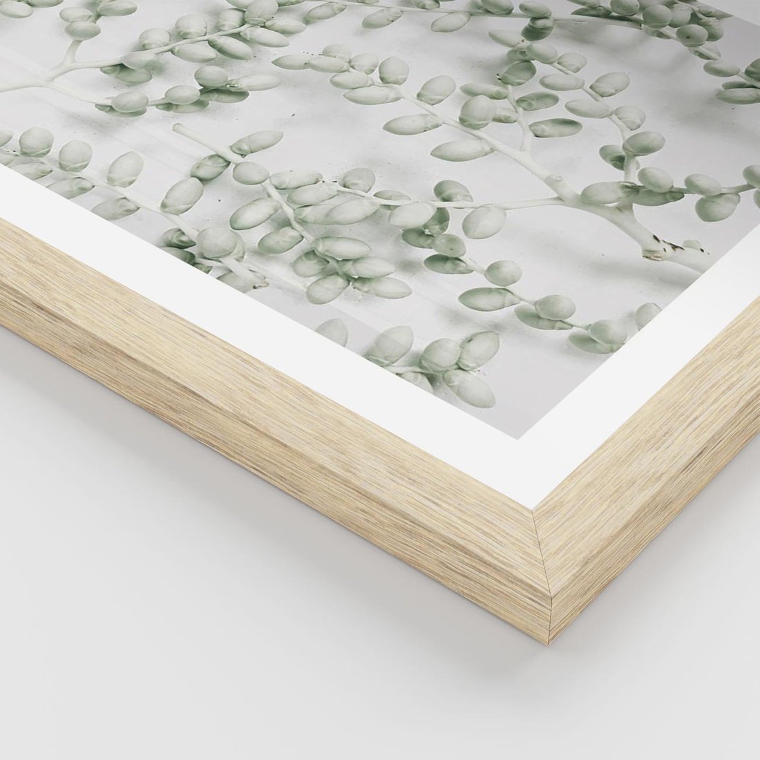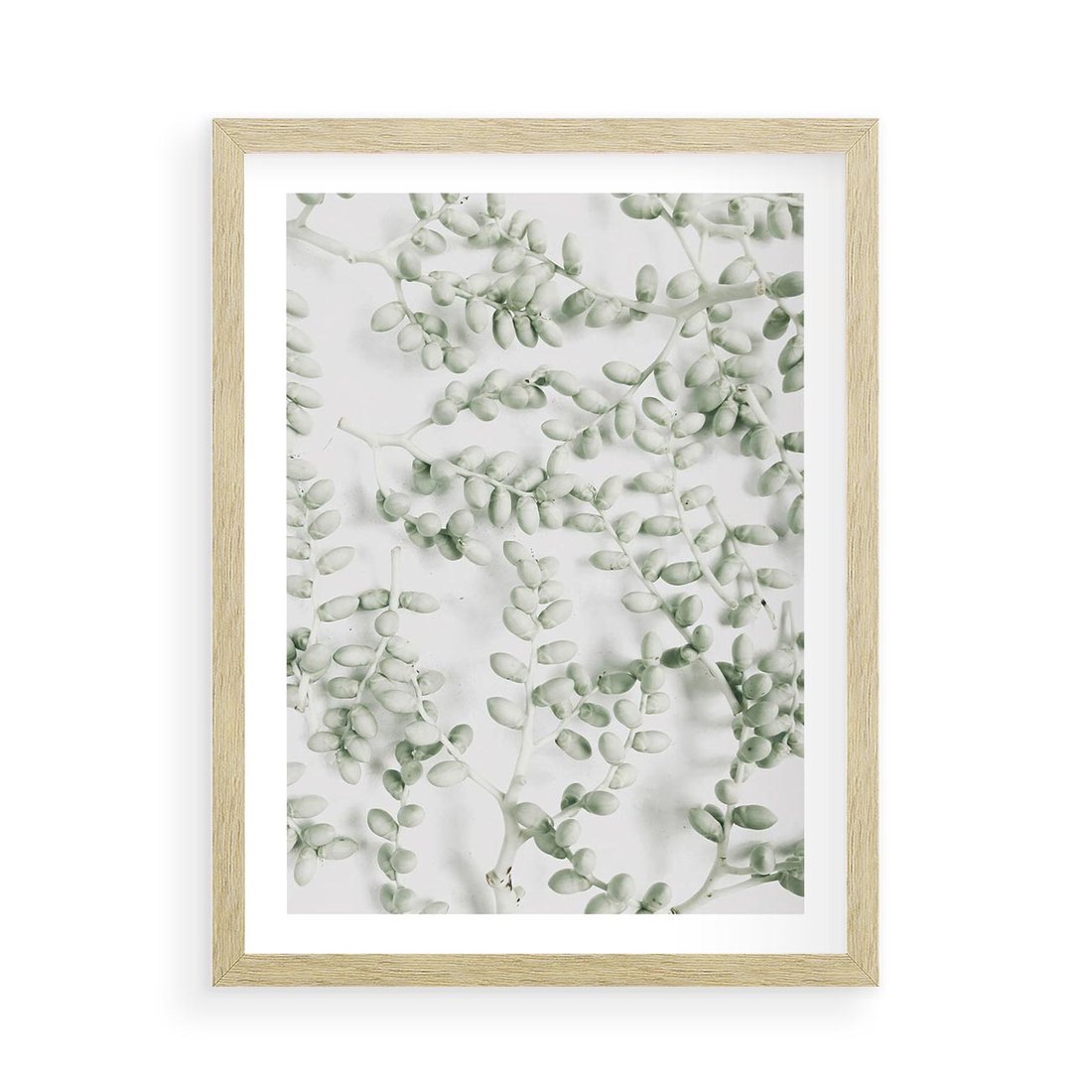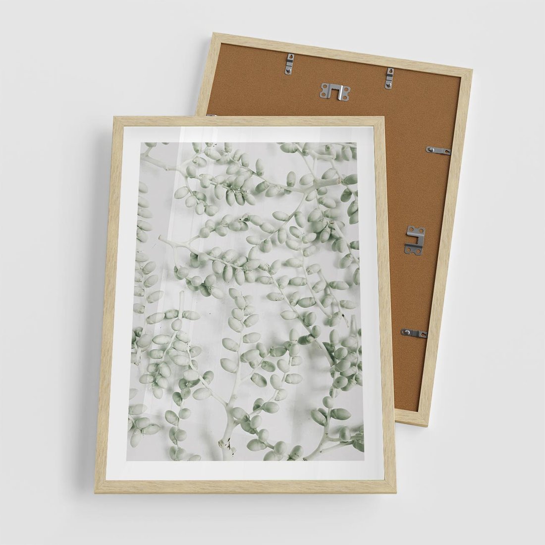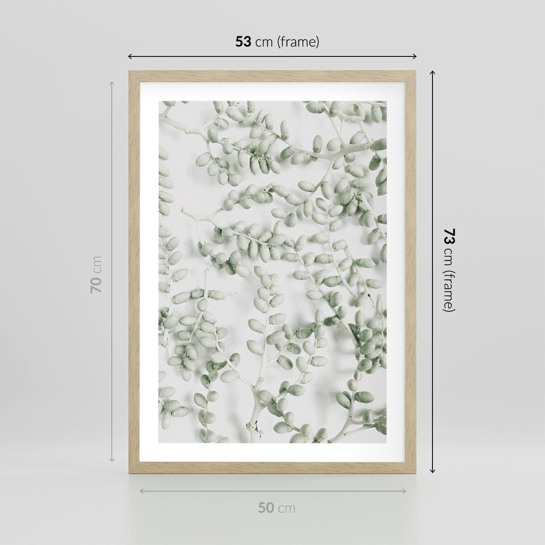 Plakat w ramie 50x70 - Delikatność Zieleni - zielone gałązki, listki - rama drewno