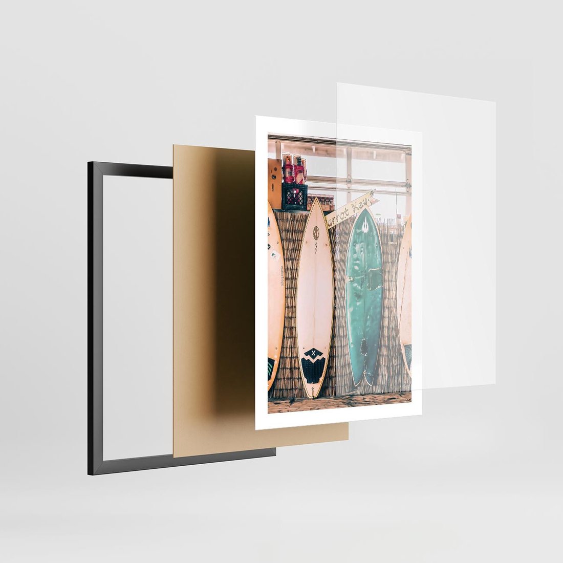 - Plakat w ramie 50x70 - Deski Surfingowe w Pionie