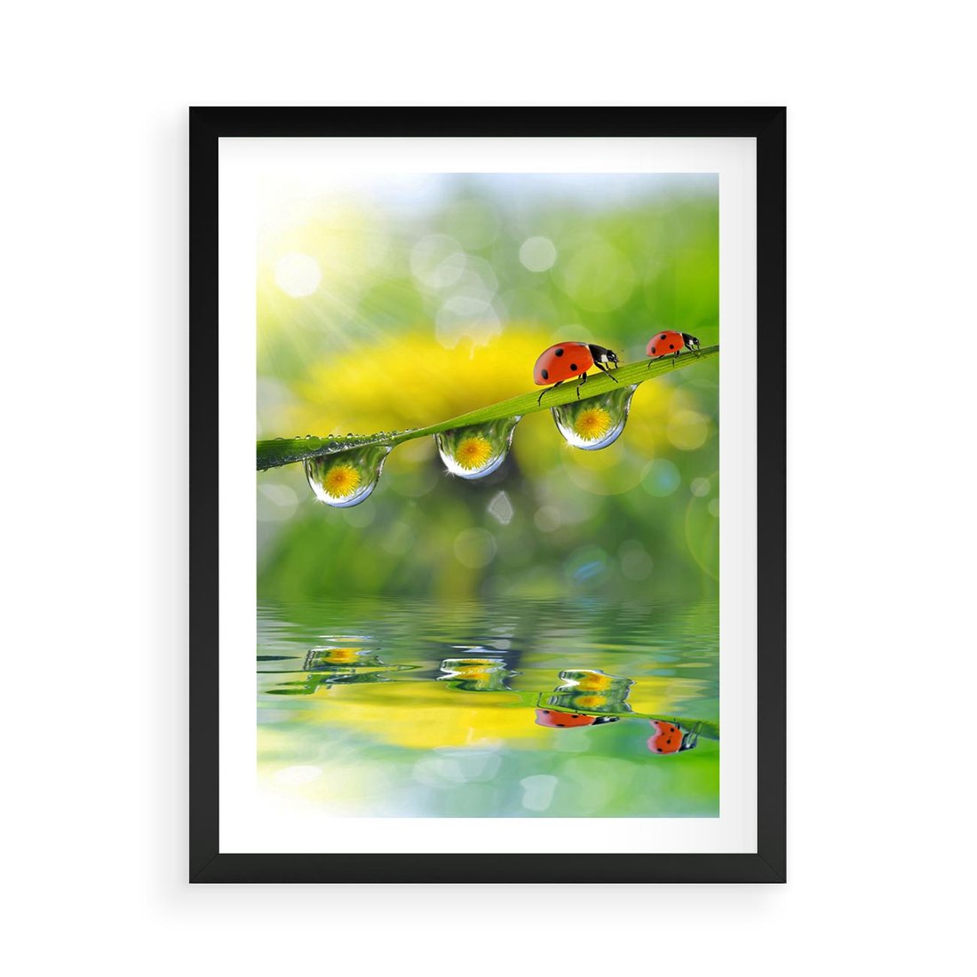 Plakat w ramie 50x70 - Deszczowa Biedronka - biedronka, deszcz - rama czarna
