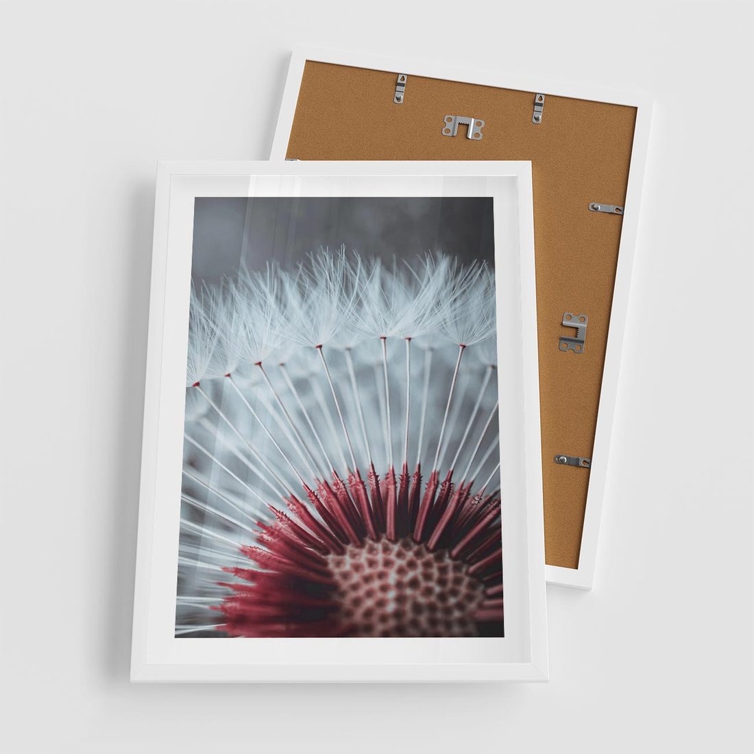 Plakat w ramie 50x70 - Dmuchawiec w Detalu - dmuchawiec, zdjęcie makro - rama biała