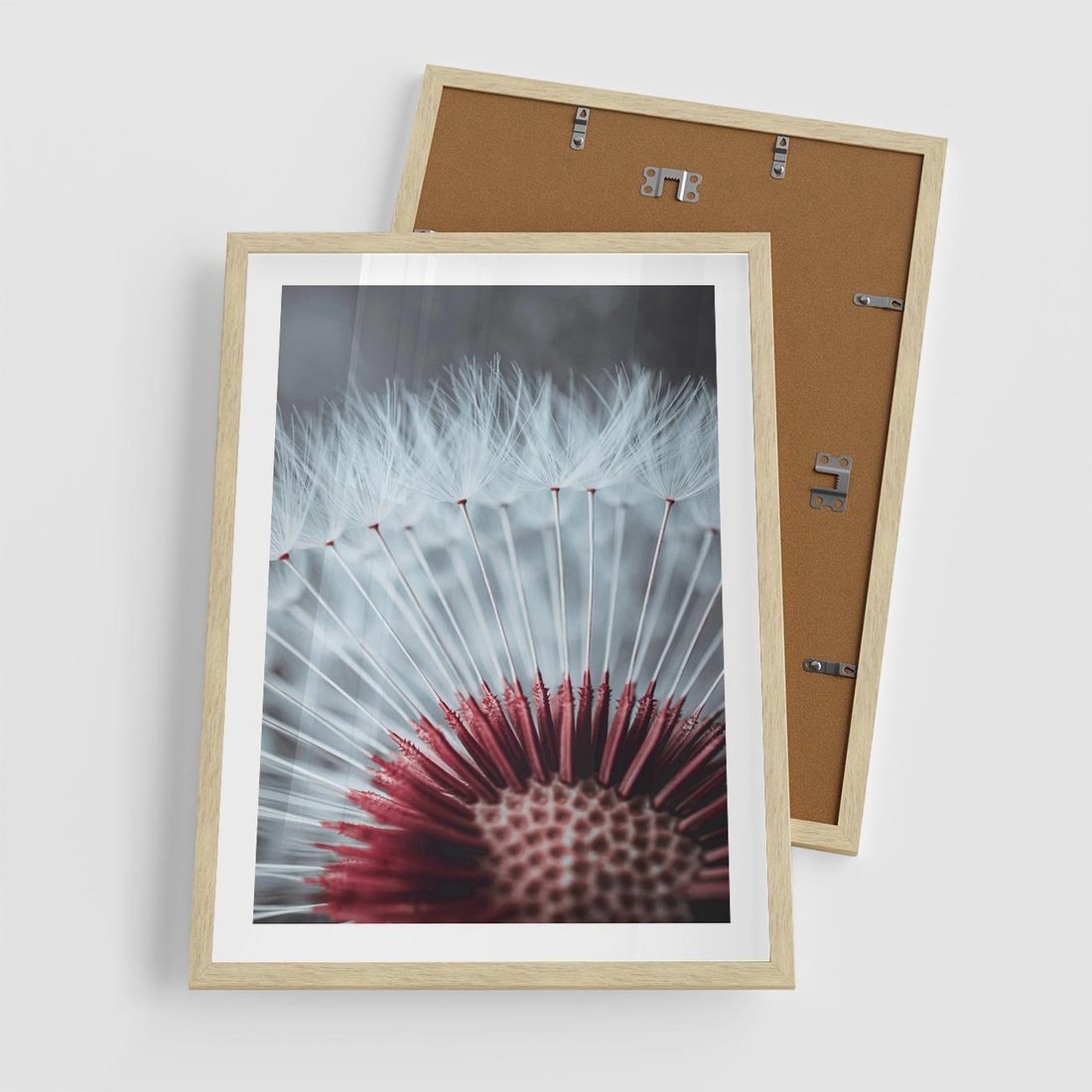 Plakat w ramie 50x70 - Dmuchawiec w Detalu - dmuchawiec, zdjęcie makro - rama drewno