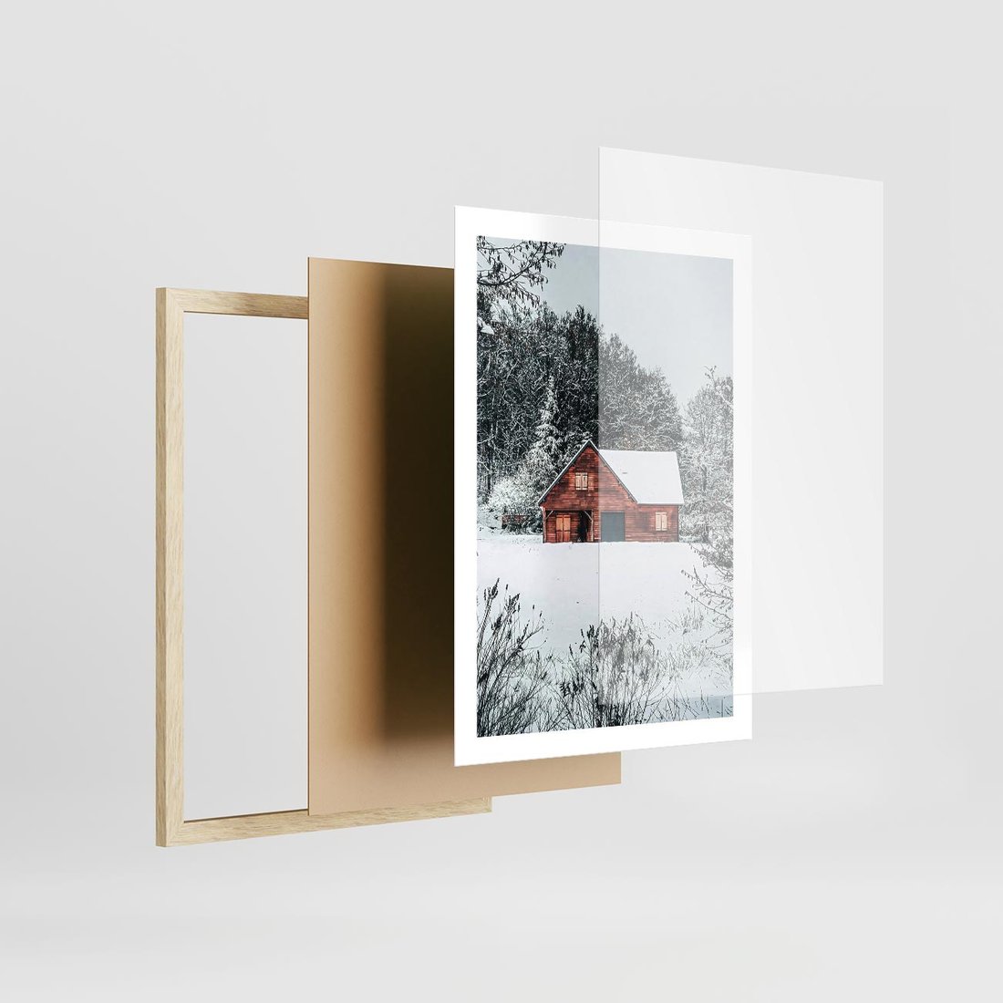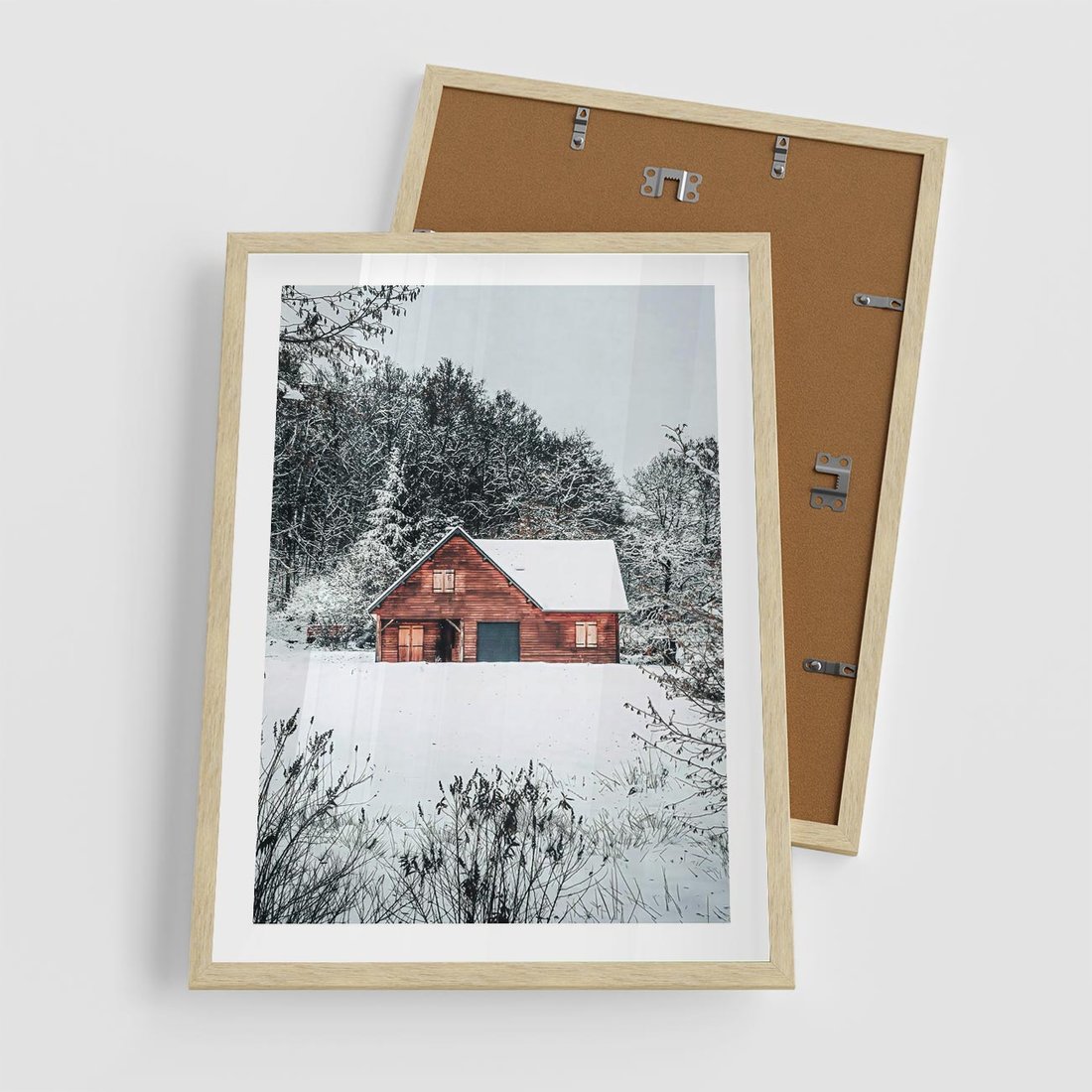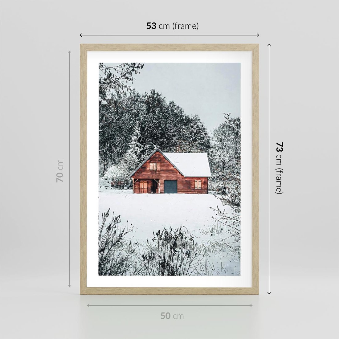 - Plakat w ramie 50x70 - Domek w Górach Pokryty Śniegiem