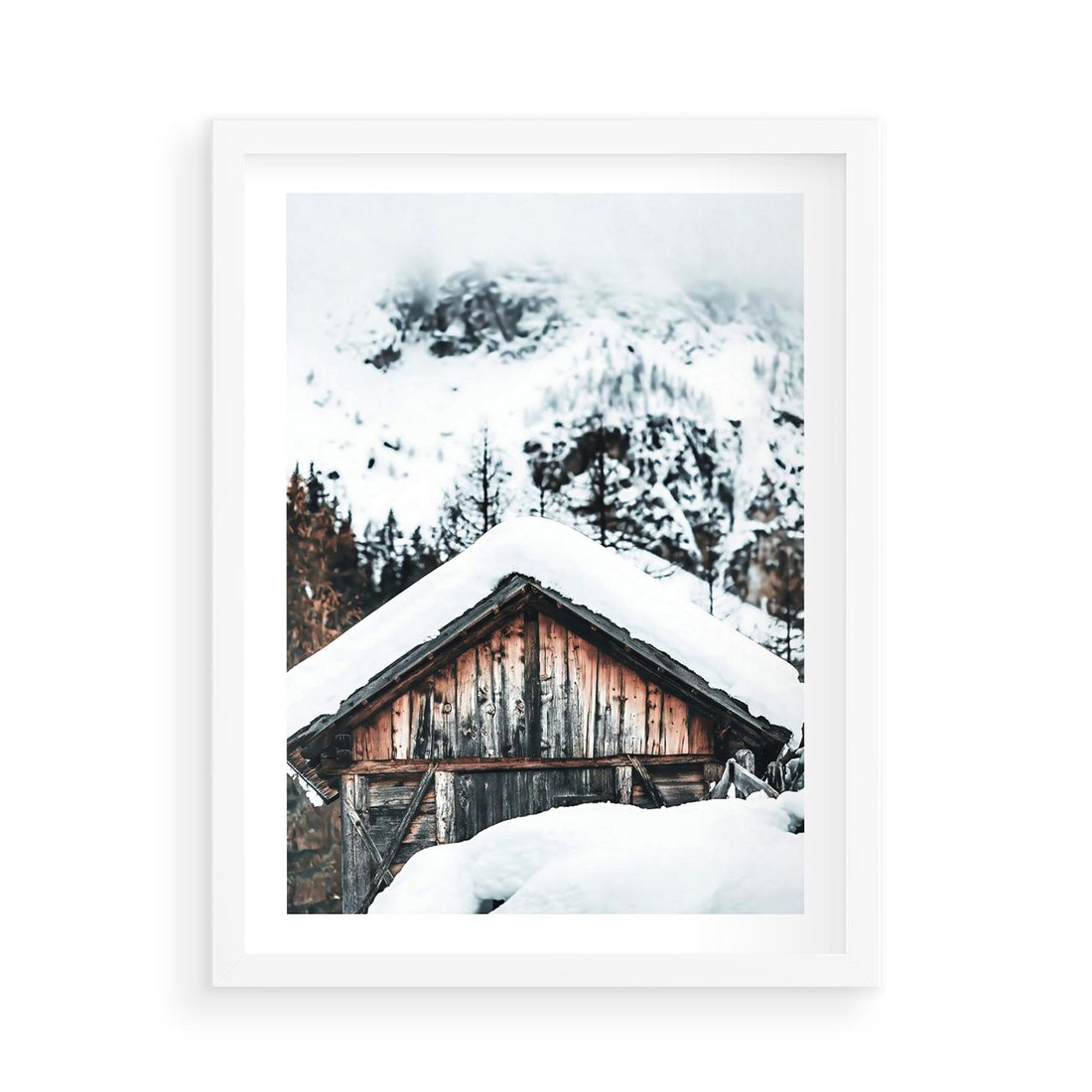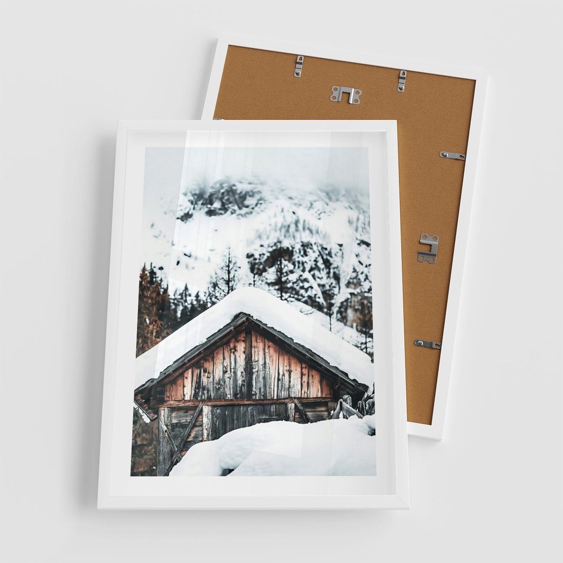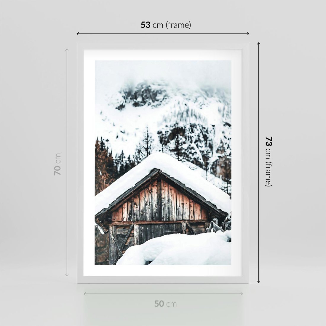 - Plakat w ramie 50x70 - Domek w Górach w Białym Odcieniu