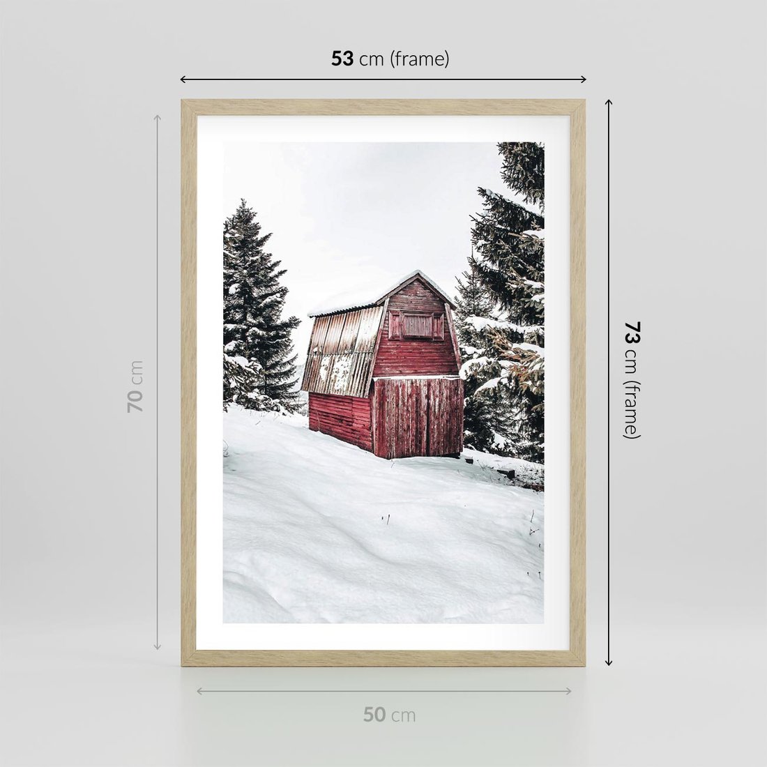 • Plakat w ramie 50x70 - Domek w Śnieżnych Górach