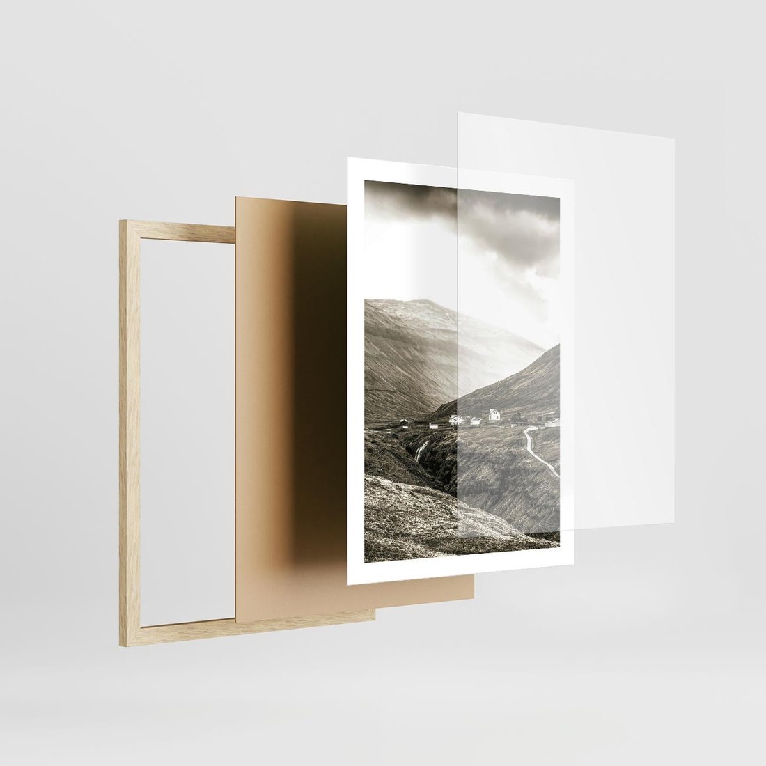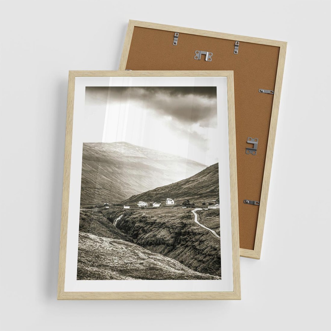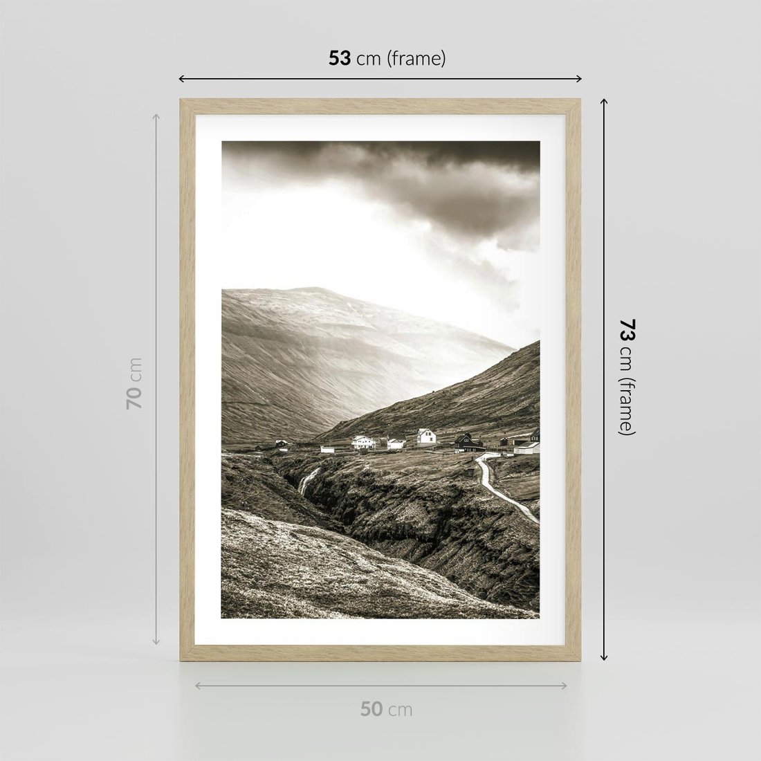 Plakat w ramie 50x70 - Domki w Górach - czarno biała fotografia, górski pejzaż - rama drewno