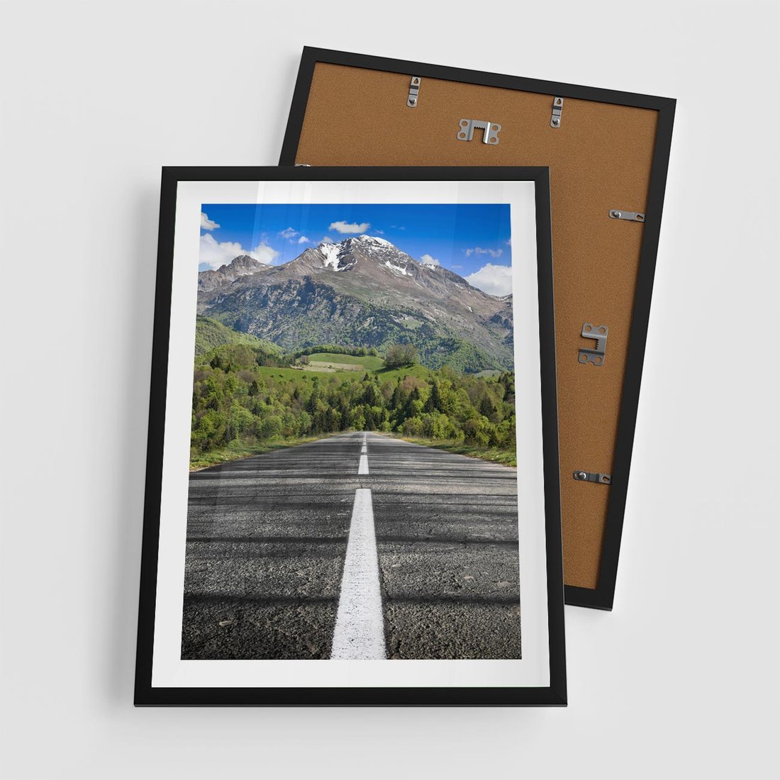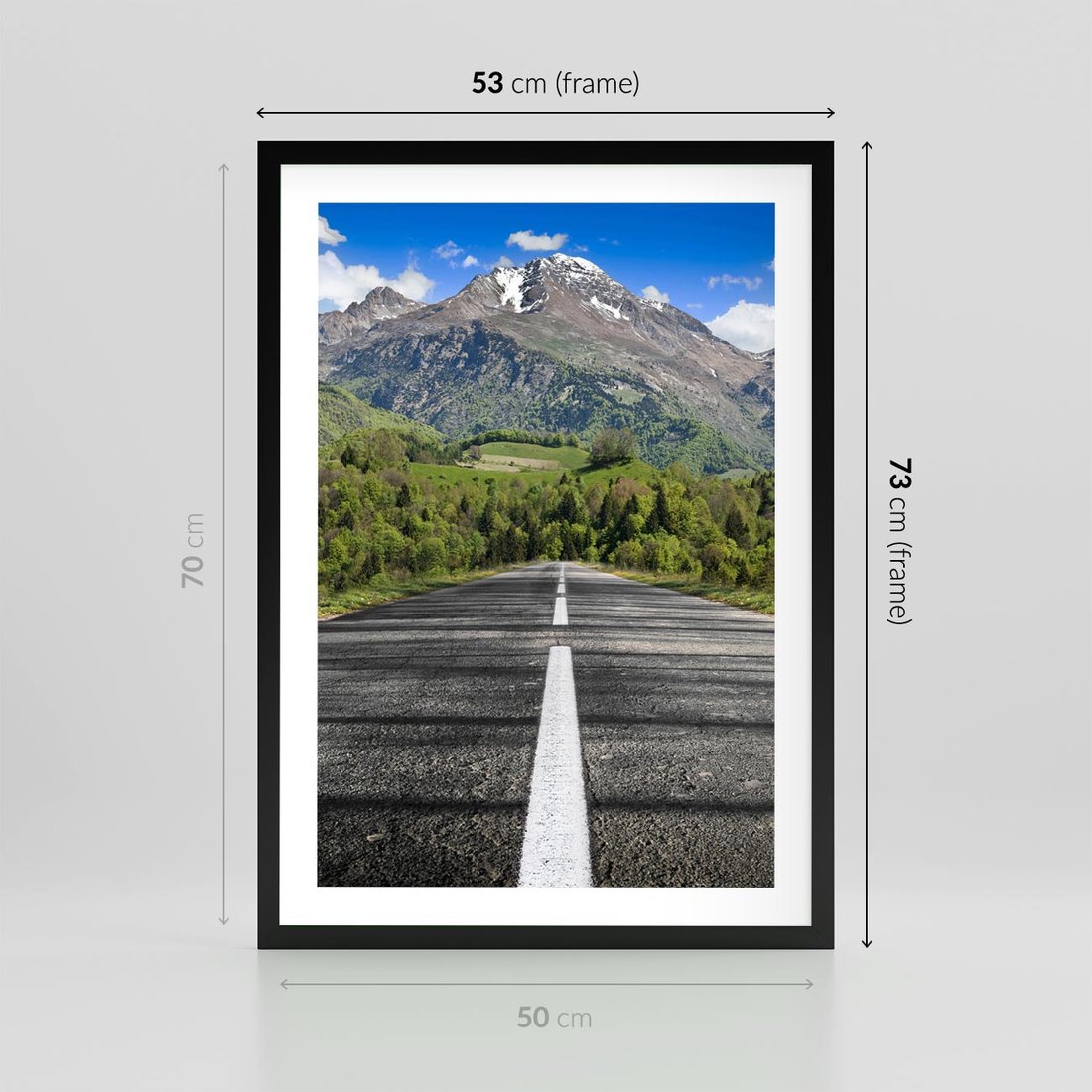 - Plakat w ramie 50x70 - Droga przez góry: podróż do przygody