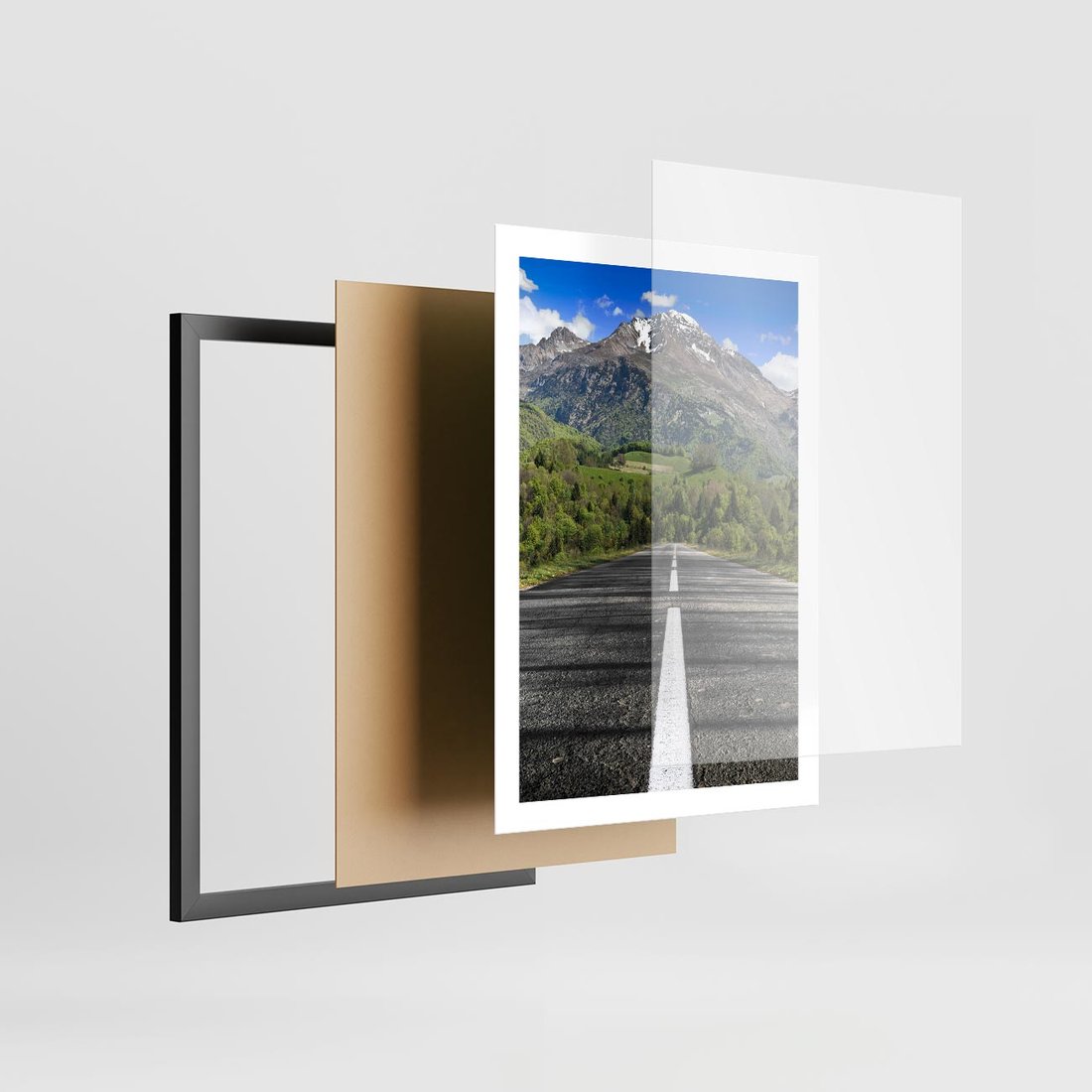 Plakat w ramie 50x70 - Droga przez góry: podróż do przygody - droga, góry - rama czarna