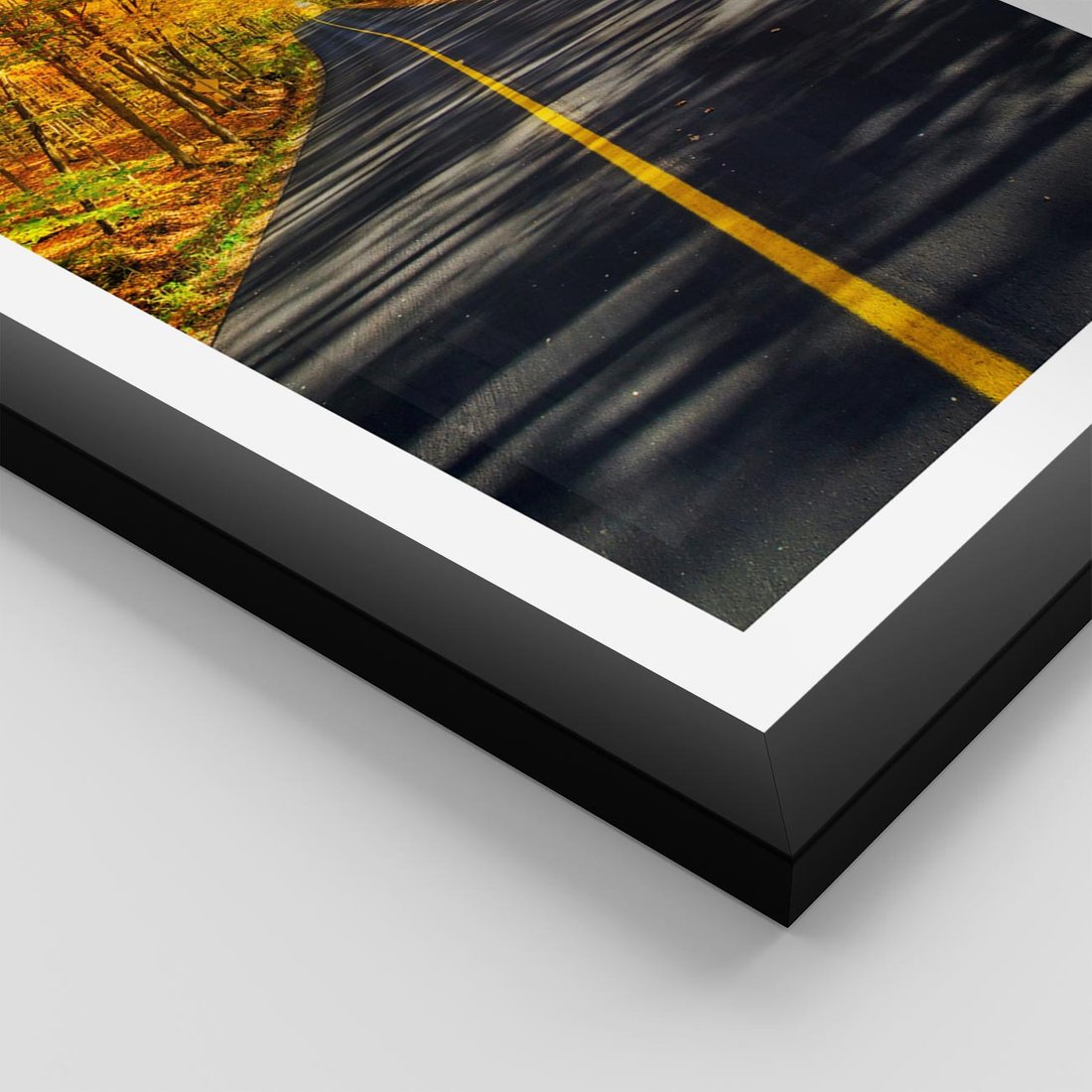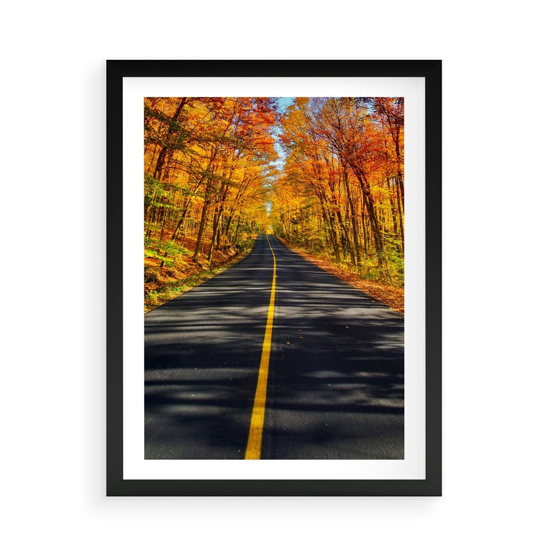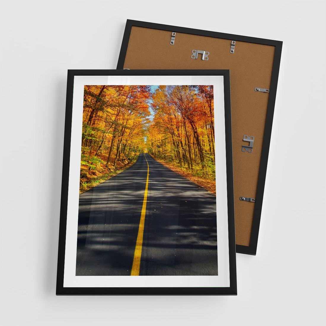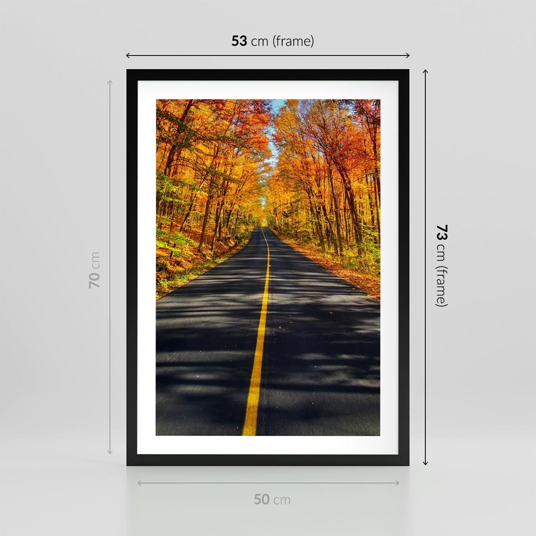 Plakat w ramie 50x70 - Droga przez jesienny las - droga, las - rama czarna