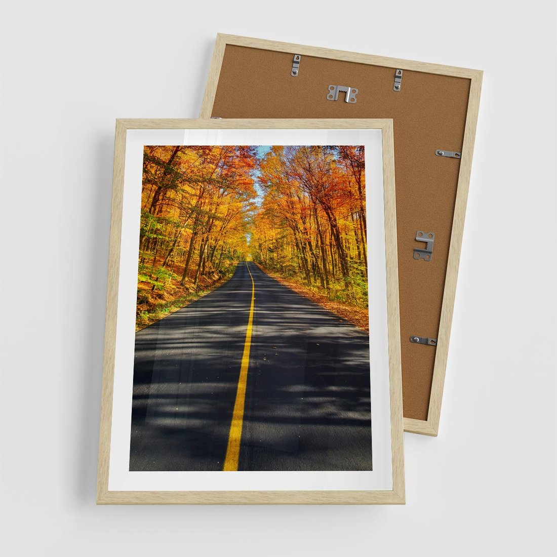 Plakat w ramie 50x70 - Droga przez jesienny las - droga, las - rama drewno