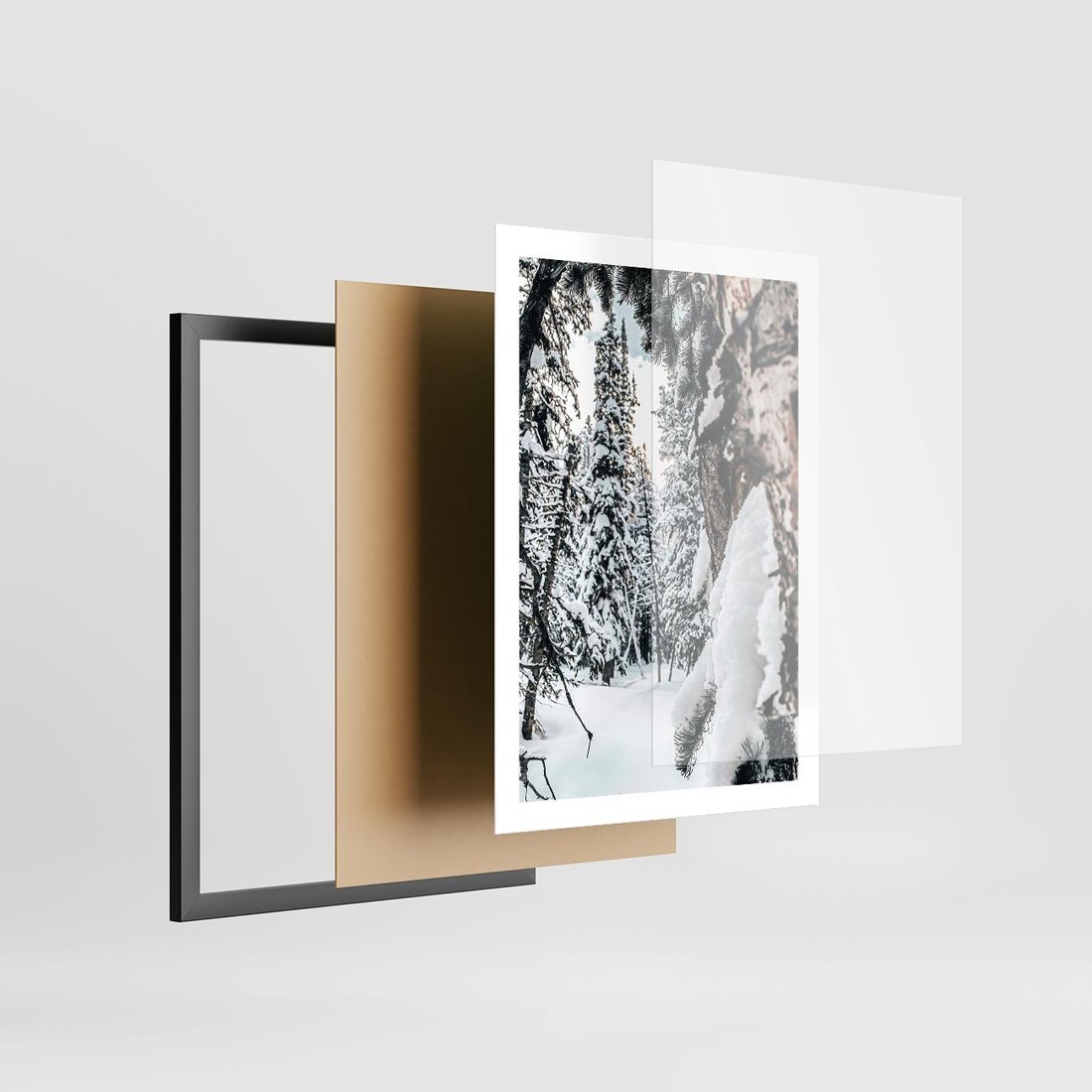 Plakat w ramie 50x70 - Drzewa pod Śniegiem - zima las, drzewa pod śniegiem - rama czarna