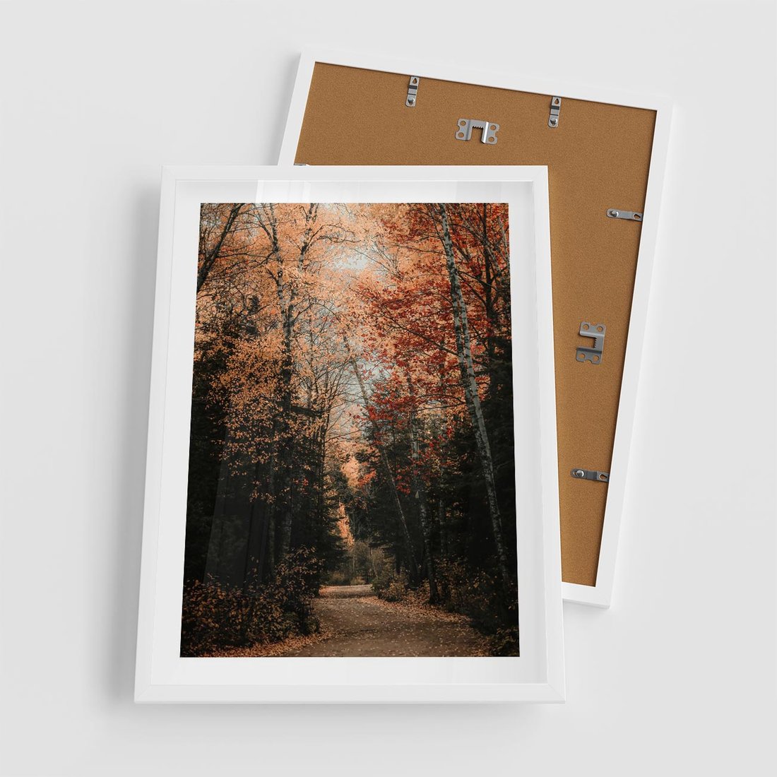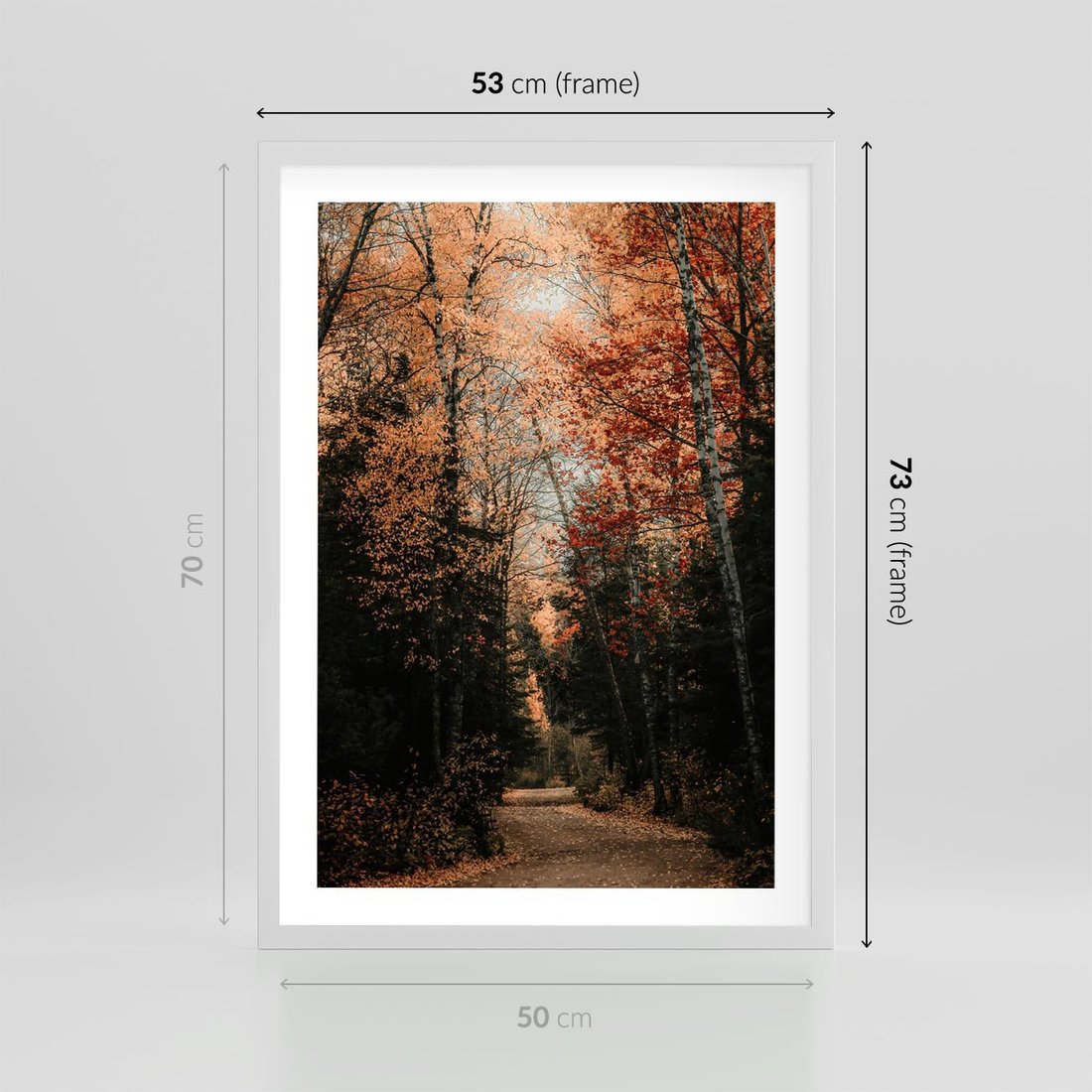 Plakat w ramie 50x70 - Drzewa w Czerwonych Liściach - las, jesienny las - rama biała