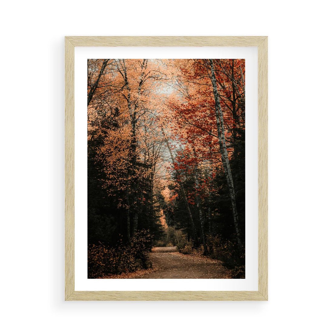 Plakat w ramie 50x70 - Drzewa w Czerwonych Liściach - las, jesienny las - rama drewno