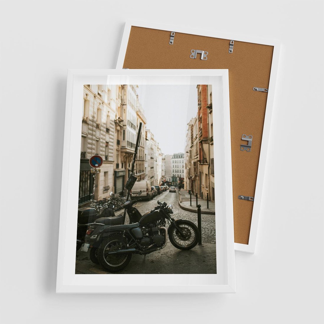 Plakat w ramie 50x70 - Ducha Przygody - motor, uliczka - rama biała