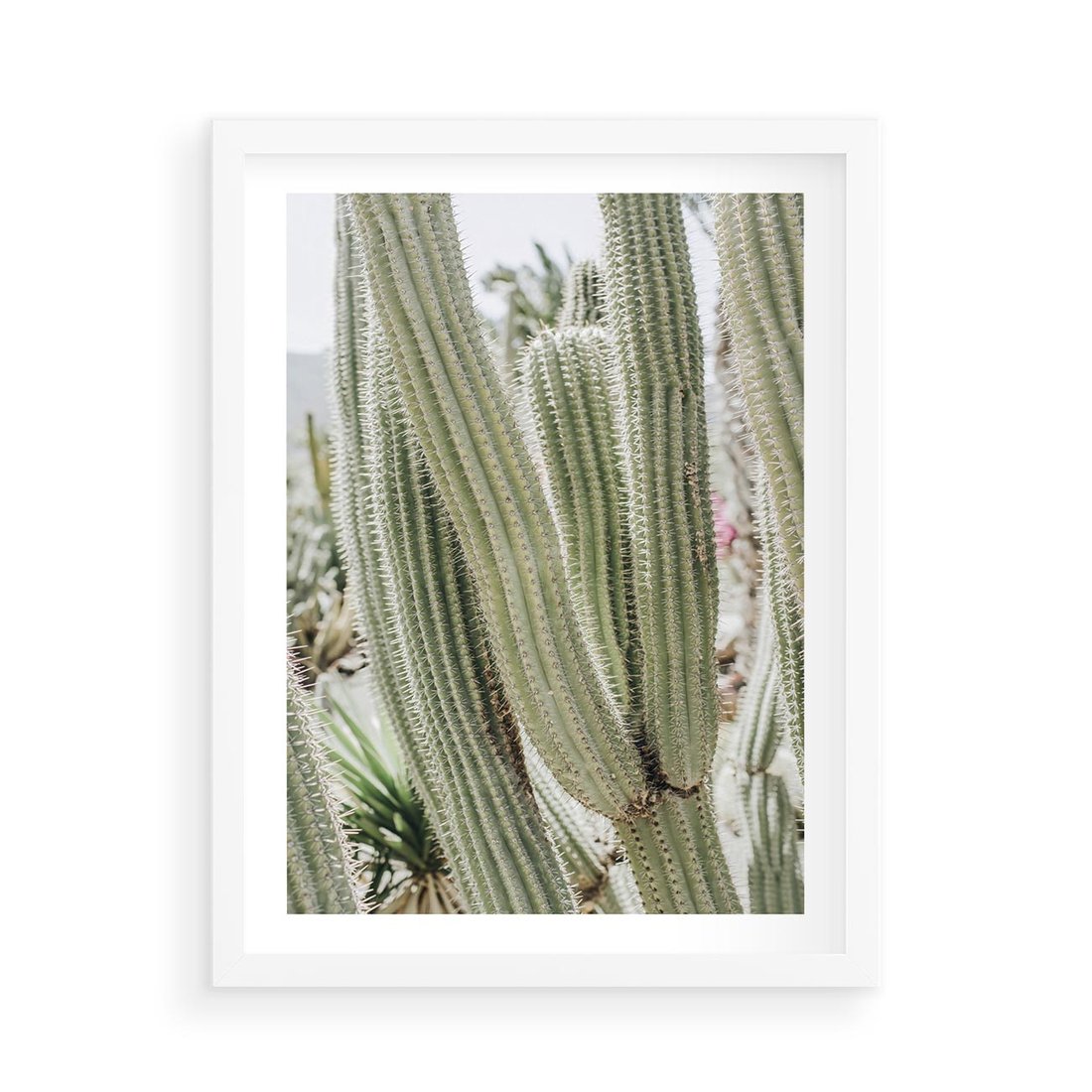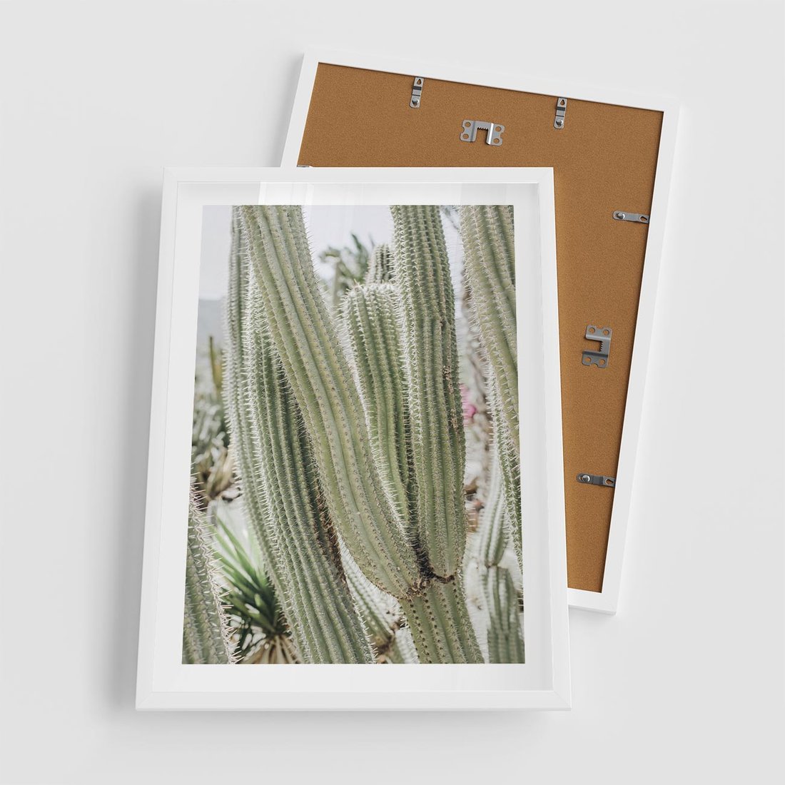 Plakat w ramie 50x70 - Duże Kaktusy w Pejzażu - kaktus, duże kaktusy na pustyni - rama biała