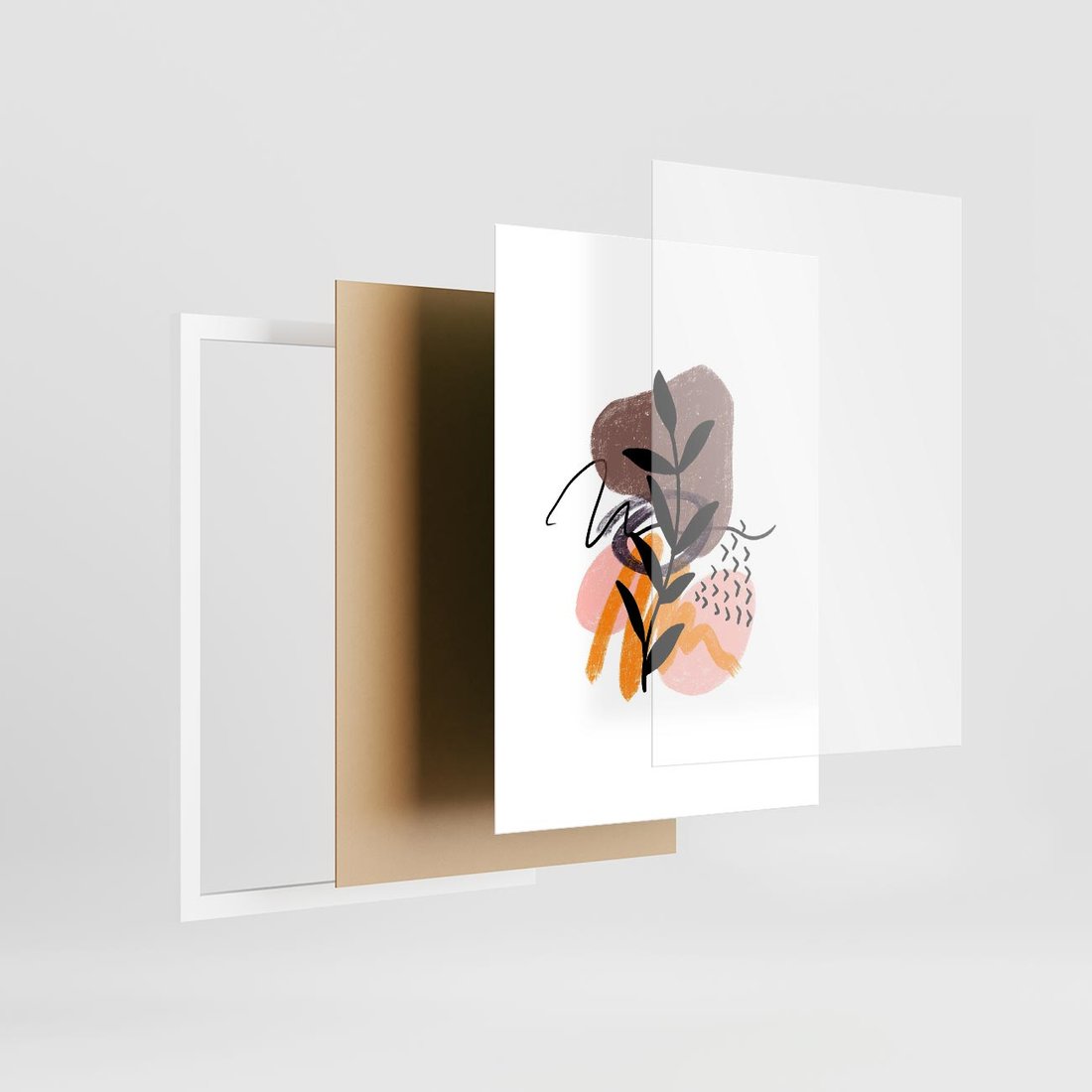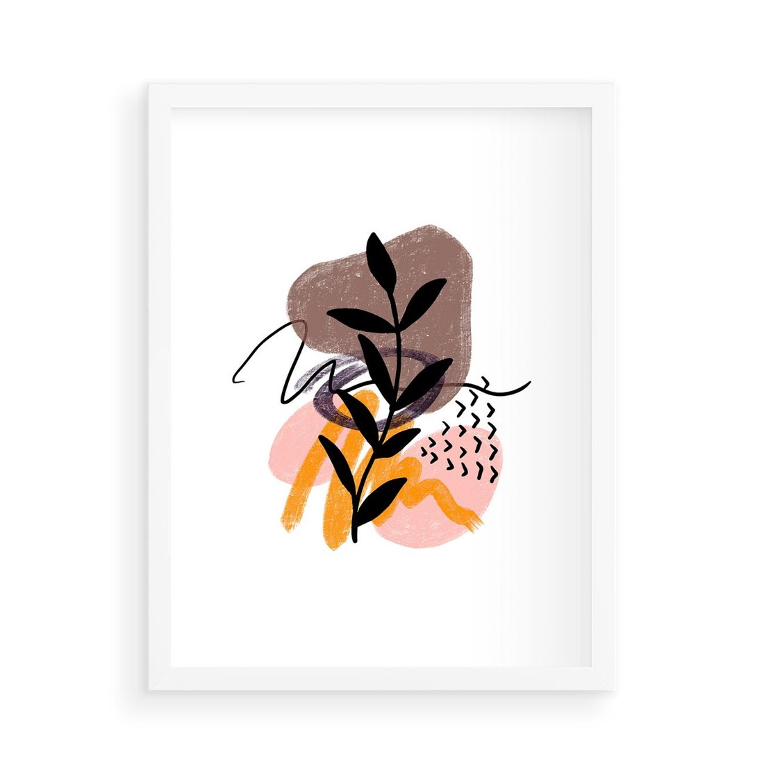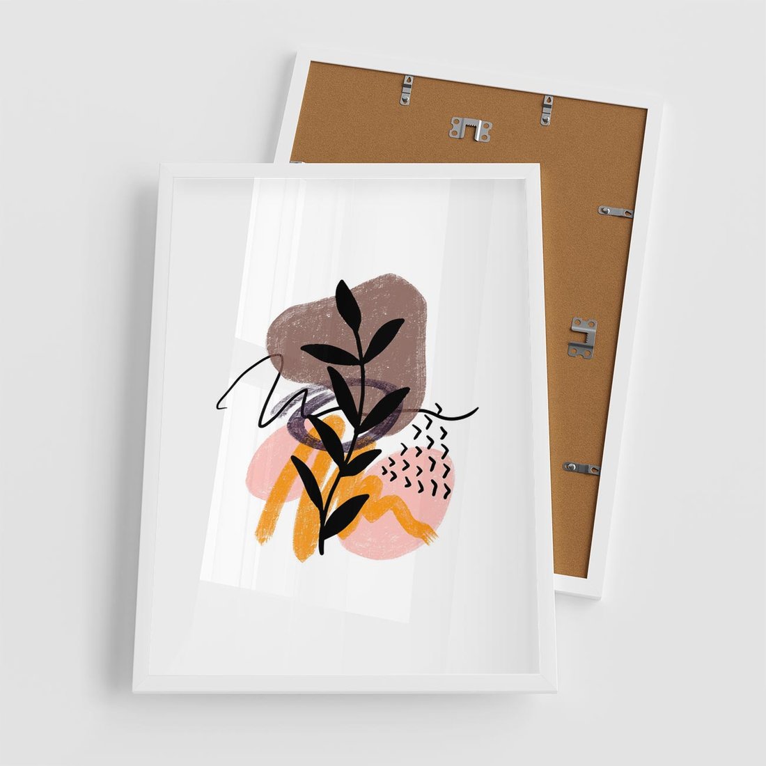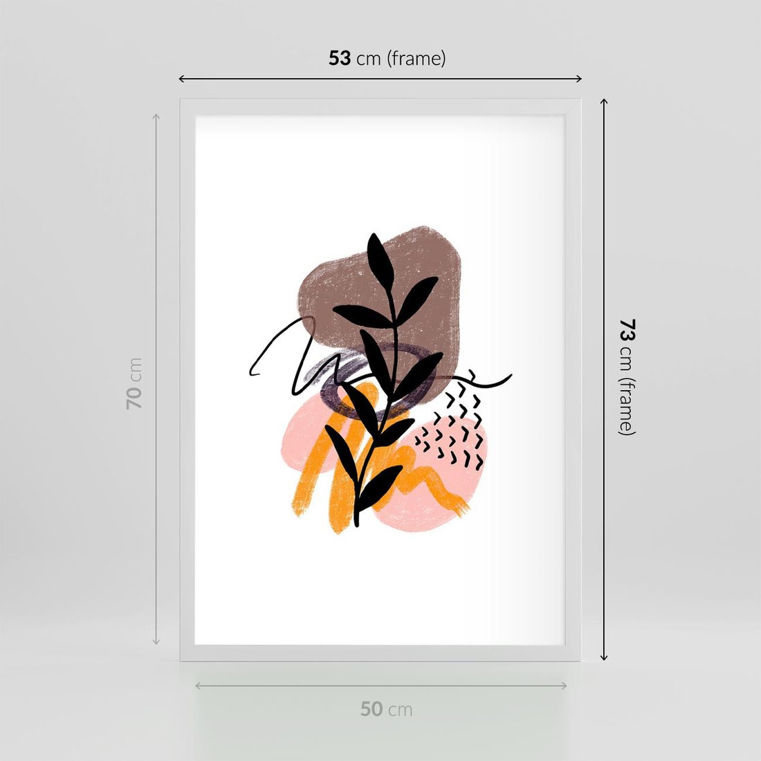 Plakat w ramie 50x70 - Echa Kształtującej się Wyobraźni - abstrakcyjna sztuka, liść gałązka - rama biała