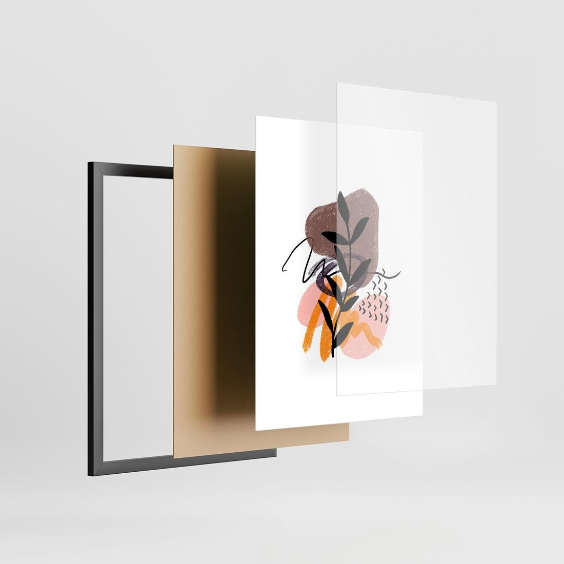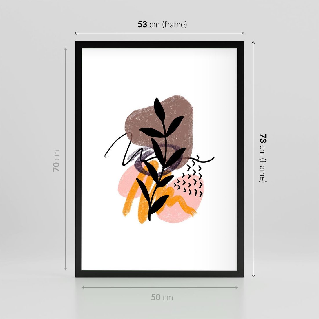 Plakat w ramie 50x70 - Echa Kształtującej się Wyobraźni - abstrakcyjna sztuka, liść gałązka - rama czarna