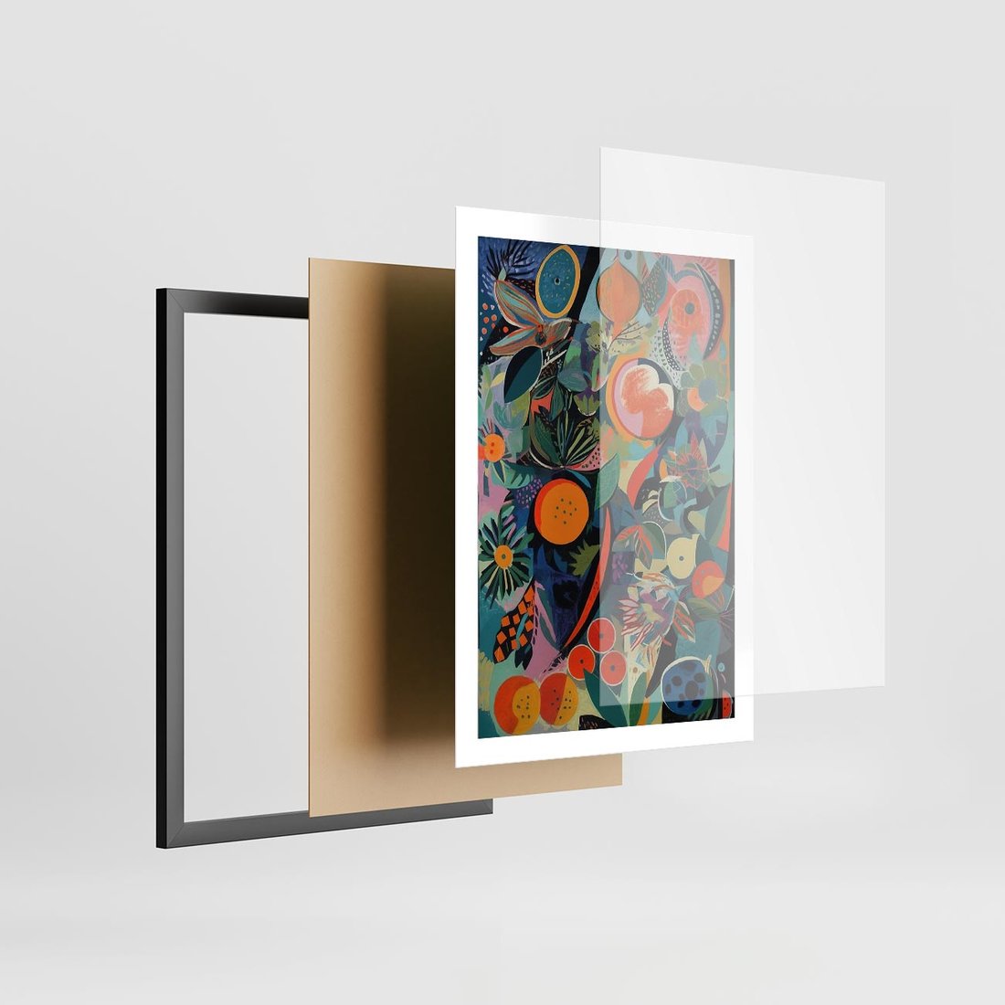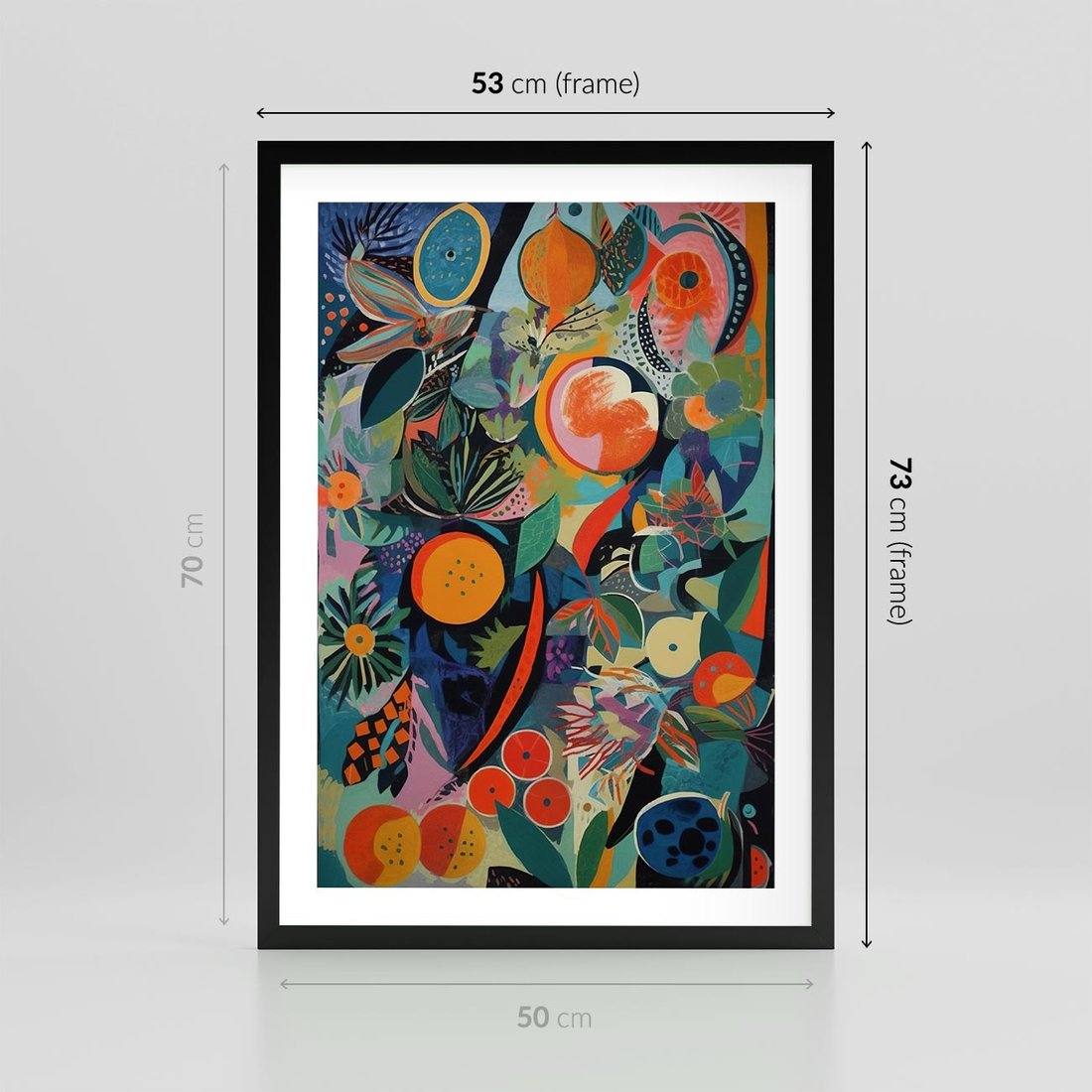 Ten abstrakcyjny obraz olejny, nawiązujący do stylu Picassa, eksploruje bogactwo kolorów i form owoców. Żywe barwy oraz swobodne linie tworzą dynamiczną kompozycję, oddającą radość i energię natury.