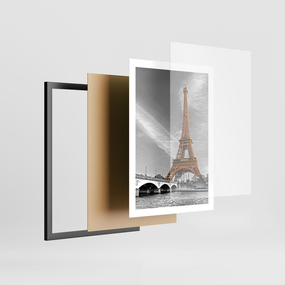 Plakat w ramie 50x70 - Echa Wieży Eiffla - wieża, Eiffla - rama czarna