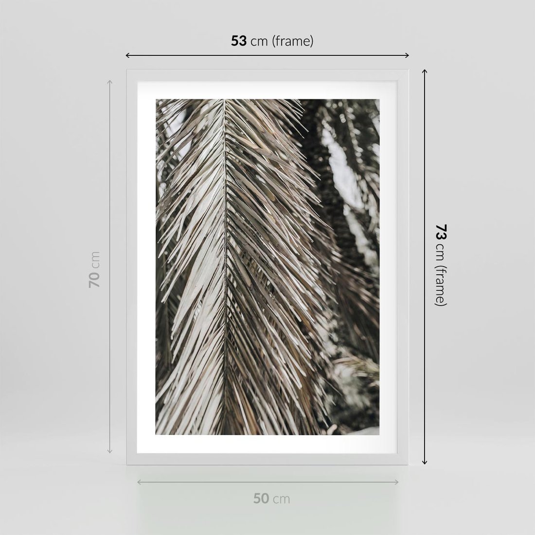 Plakat w ramie 50x70 - Egzotyczne Gałęzie - suche gałęzie, liście palmy - rama biała