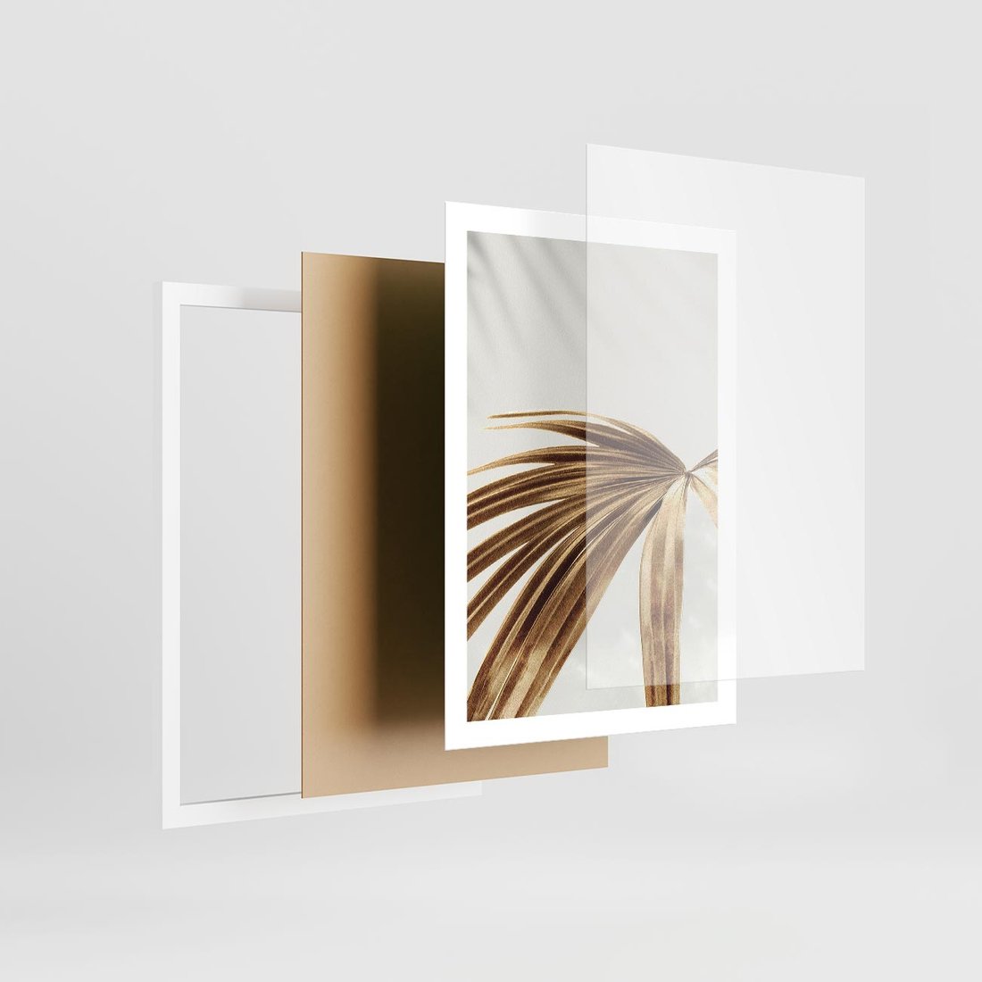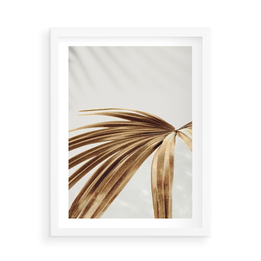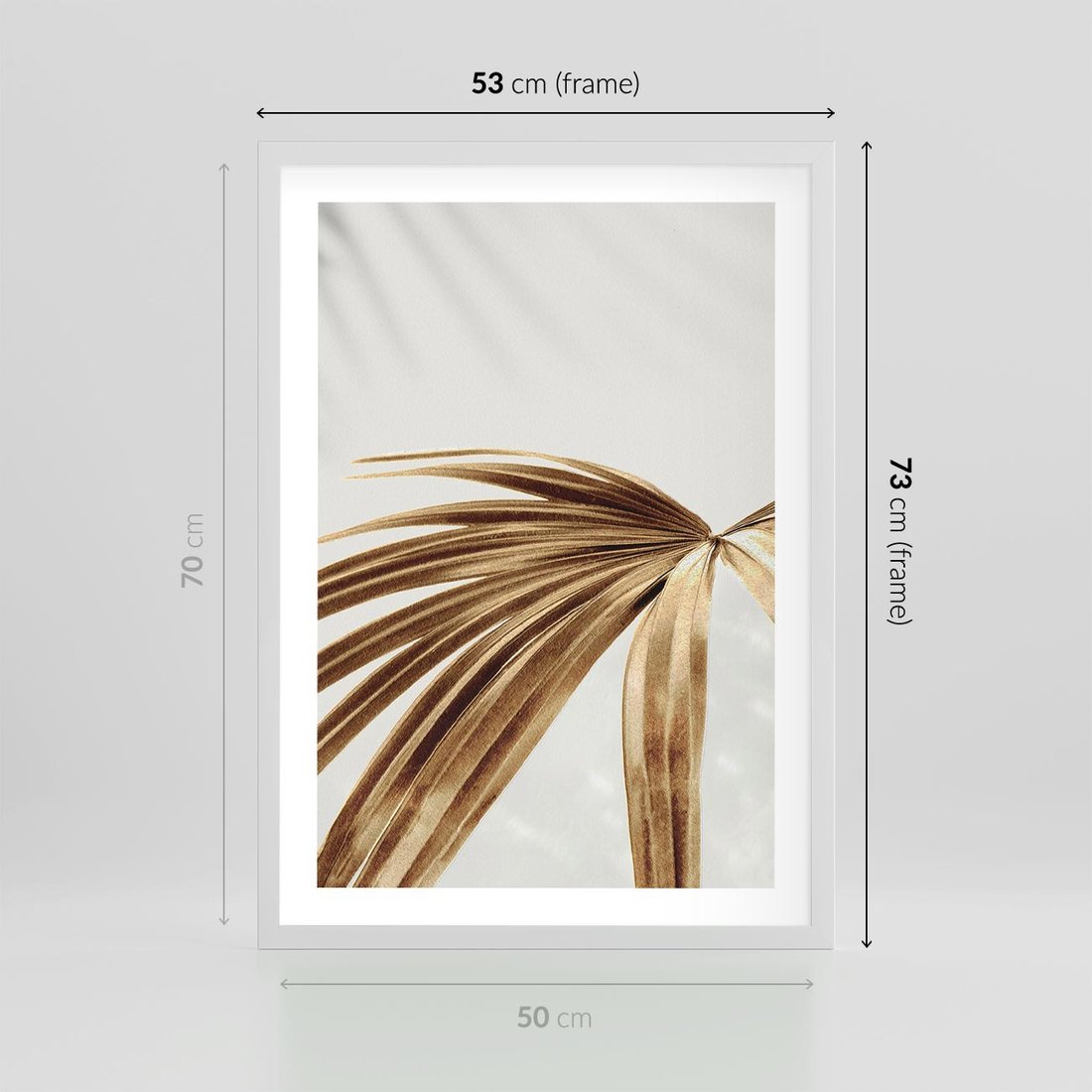Plakat w ramie 50x70 - Egzotyczny Blask - złote, liście - rama biała