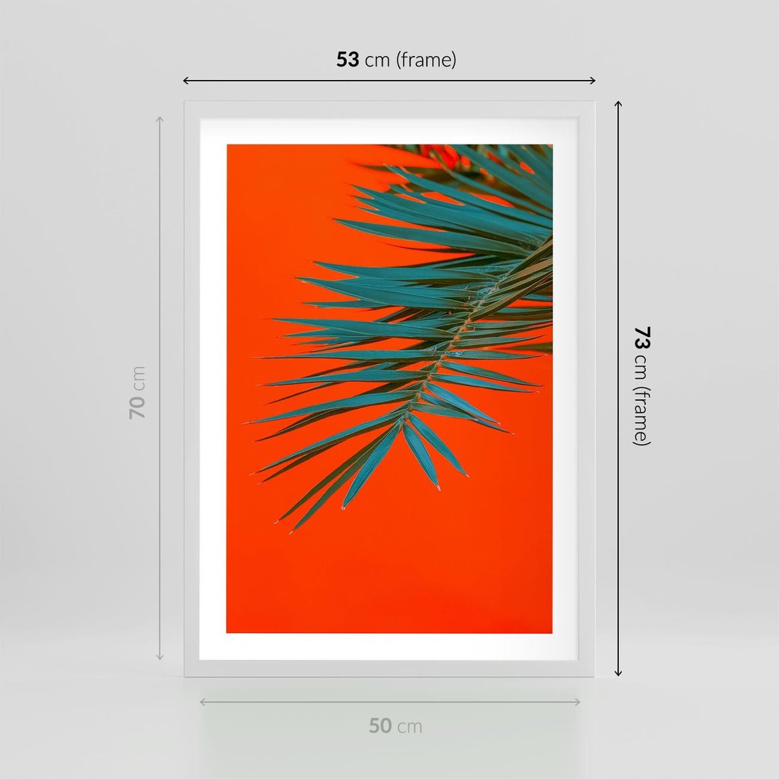 Plakat w ramie 50x70 - Egzotyczny Urok - liście, palma - rama biała