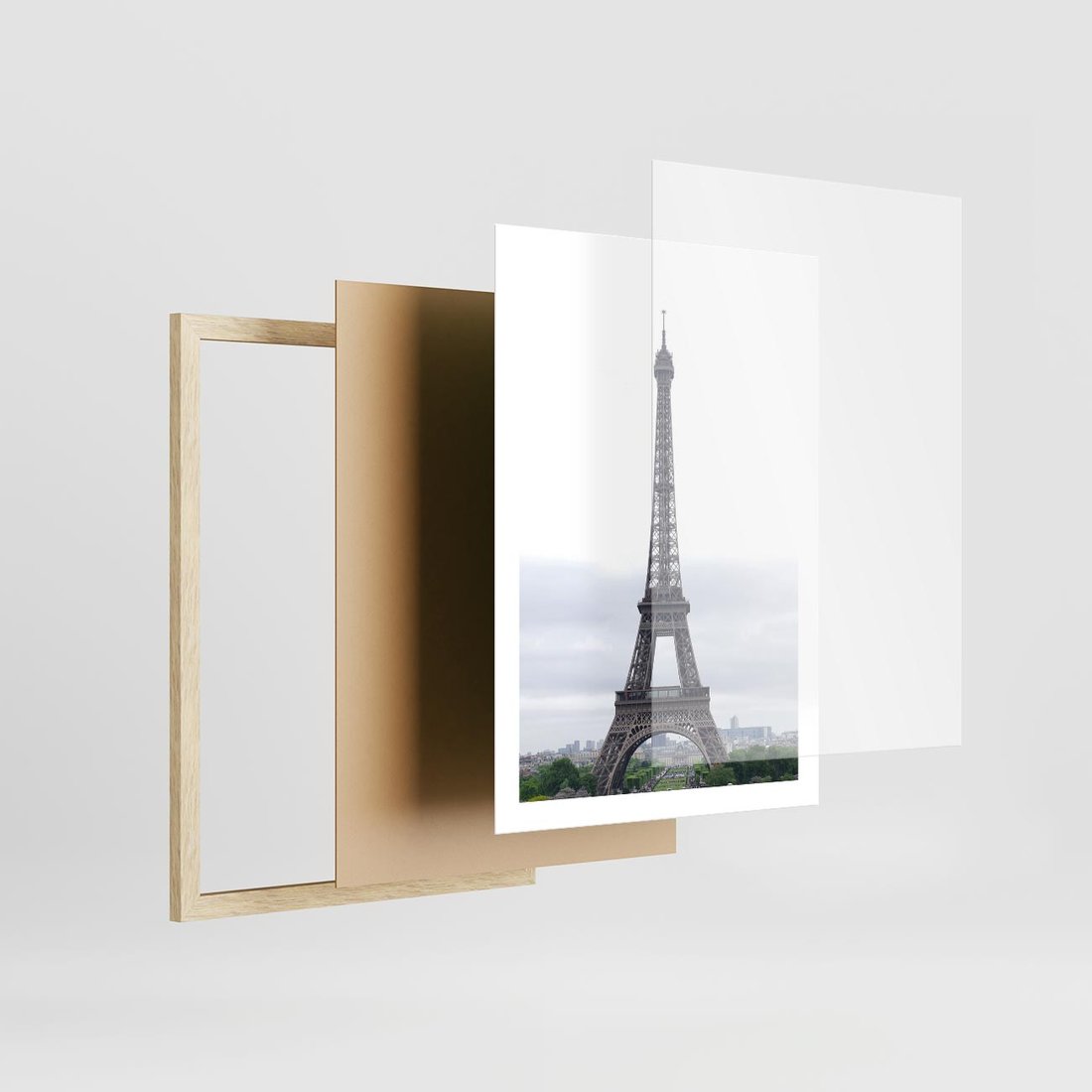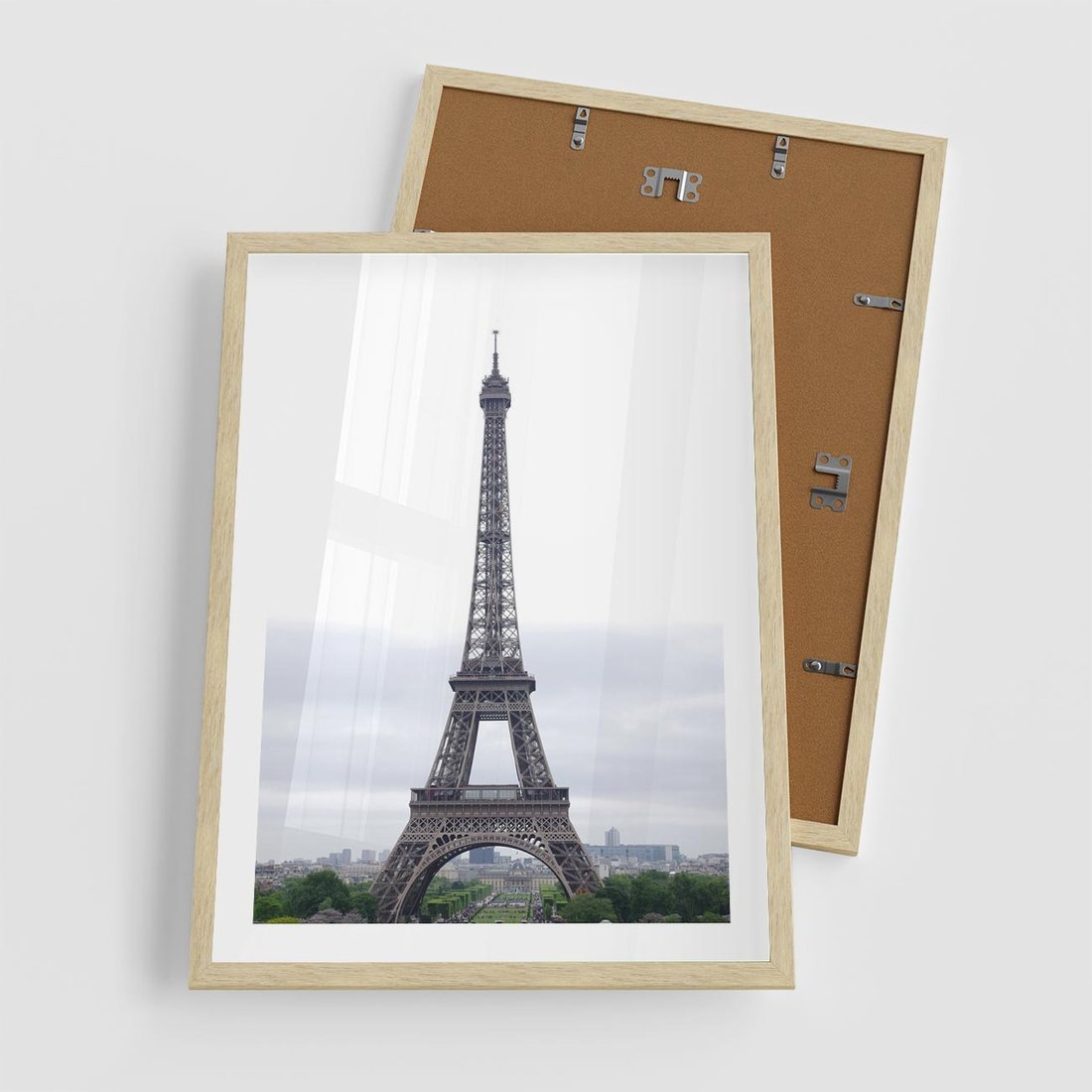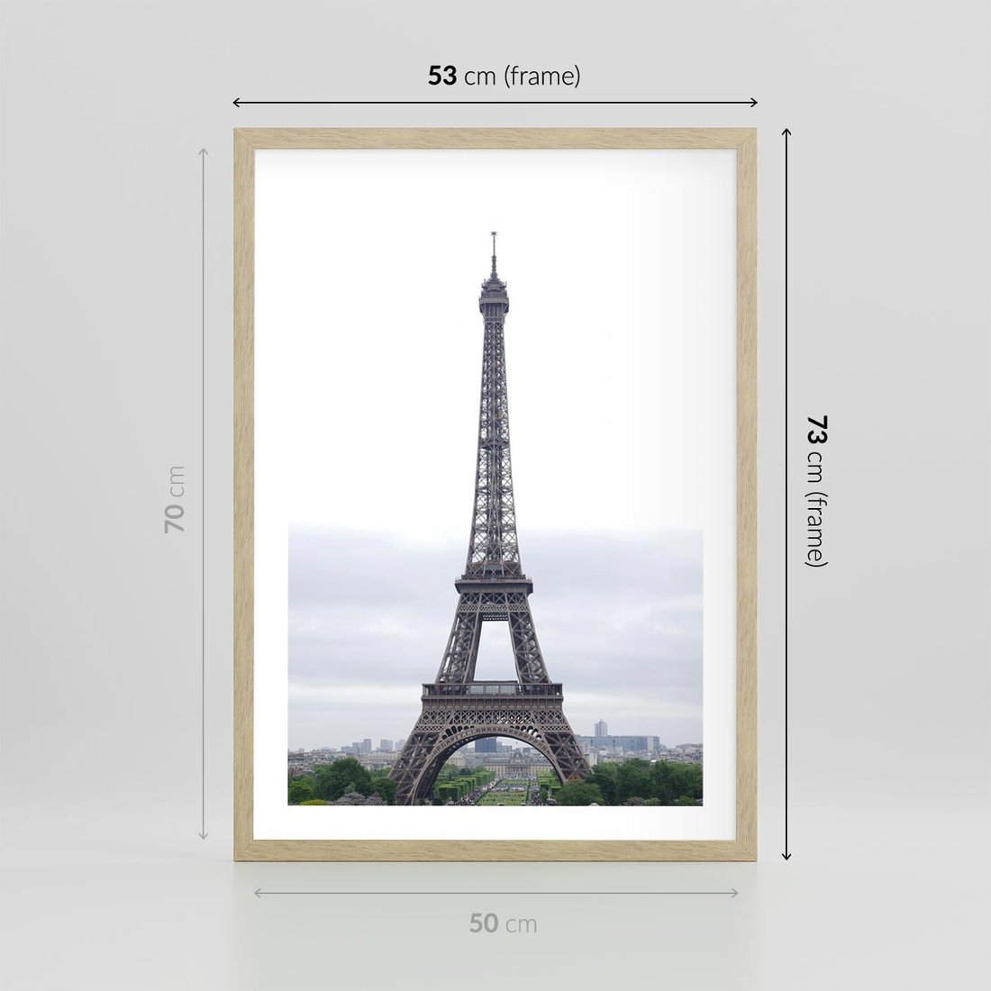 Plakat w ramie 50x70 - Eiffla w mglistym świetle - Eiffla, Paryż - rama drewno
