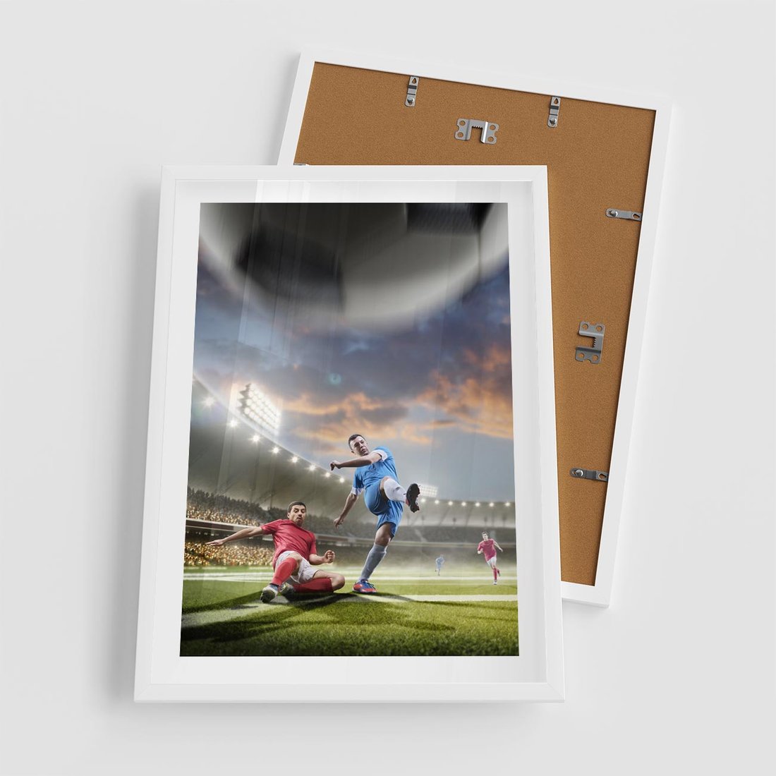 Plakat w ramie 50x70 - Ekscytacja Sportowego Świata - gol, mecz - rama biała