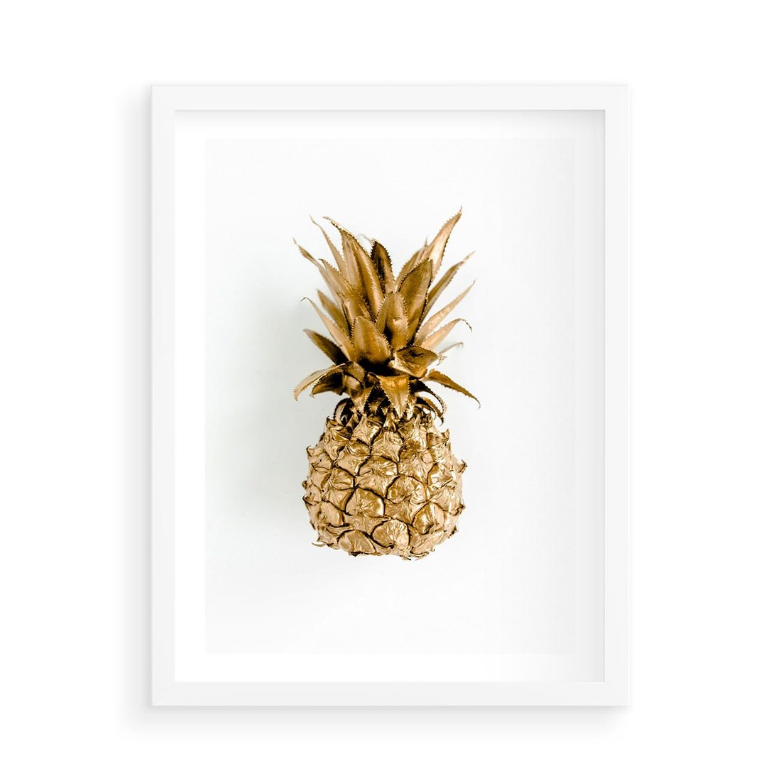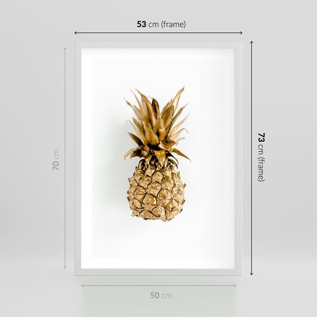 Plakat w ramie 50x70 - Ekskluzywny Akcent - złoty, ananas - rama biała