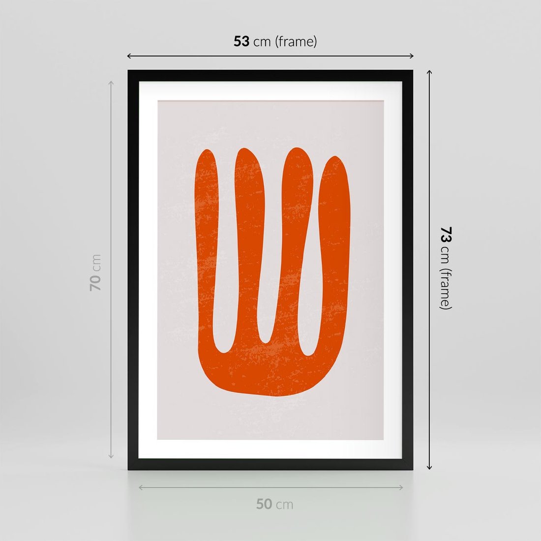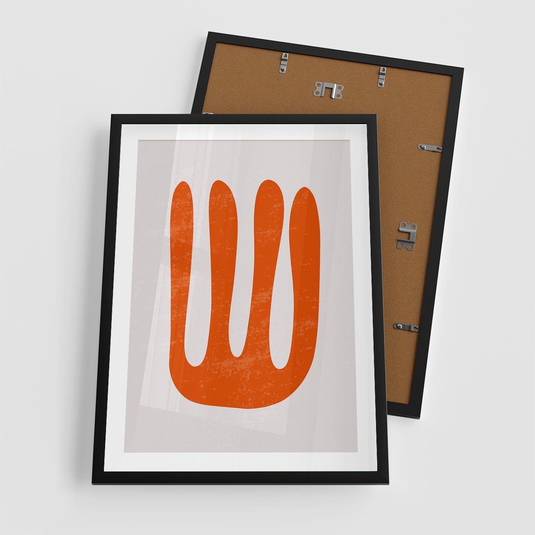 Nasz nowoczesny plakat to abstrakcyjna forma w intensywnym pomarańczowym odcieniu. To wyjątkowe dzieło sztuki wprowadza do Twojej przestrzeni wyrafinowany minimalizm i energię, tworząc dynamiczną i interesującą kompozycję.